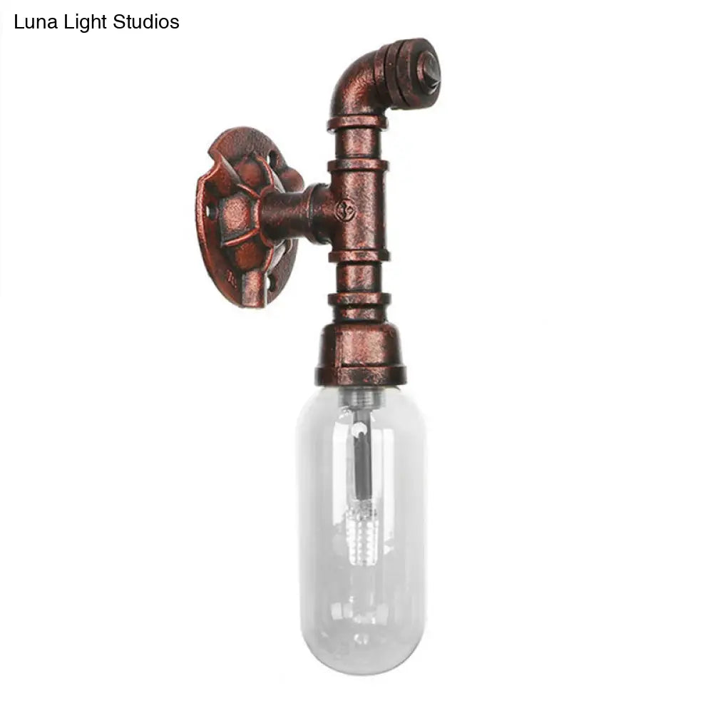 Aplique de pared industrial de cobre envejecido con cristal transparente y diseño de tubería – Lámpara de dormitorio