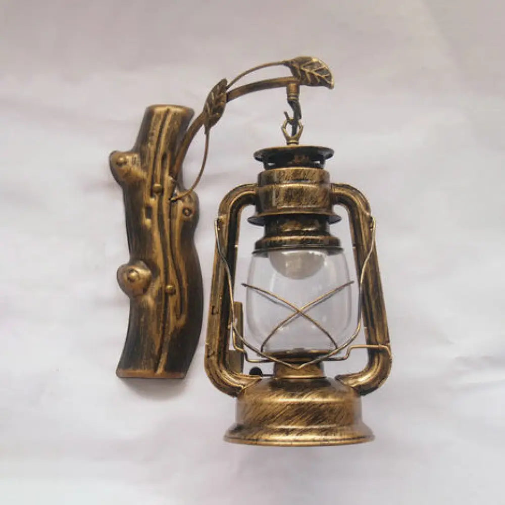 Aplique de pared estilo costero con pantalla de cristal transparente: Lámpara de 1 luz en negro/bronce/cobre para sala de estar
