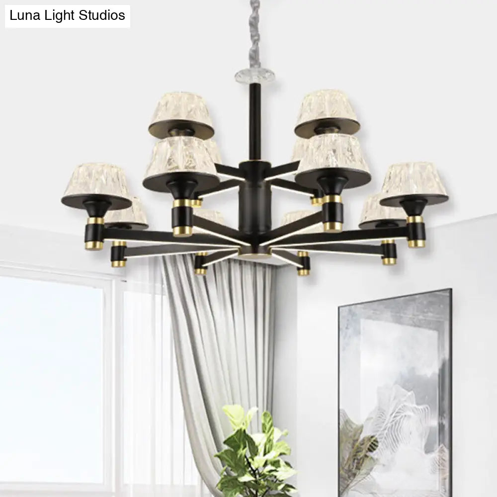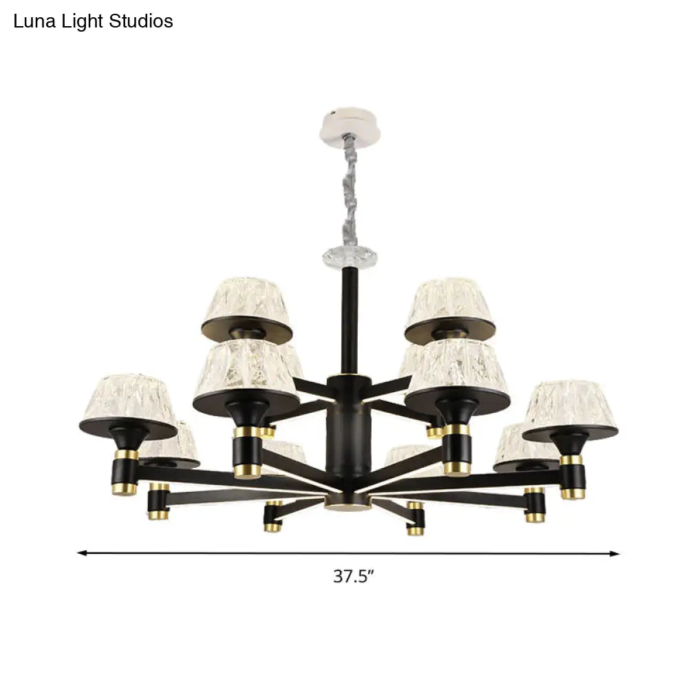 Lámpara de techo colgante de cristal modernista en forma de cono - 6/8/12 bombillas - Negra - 70/85/95 cm de ancho