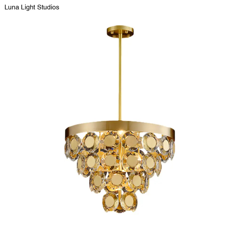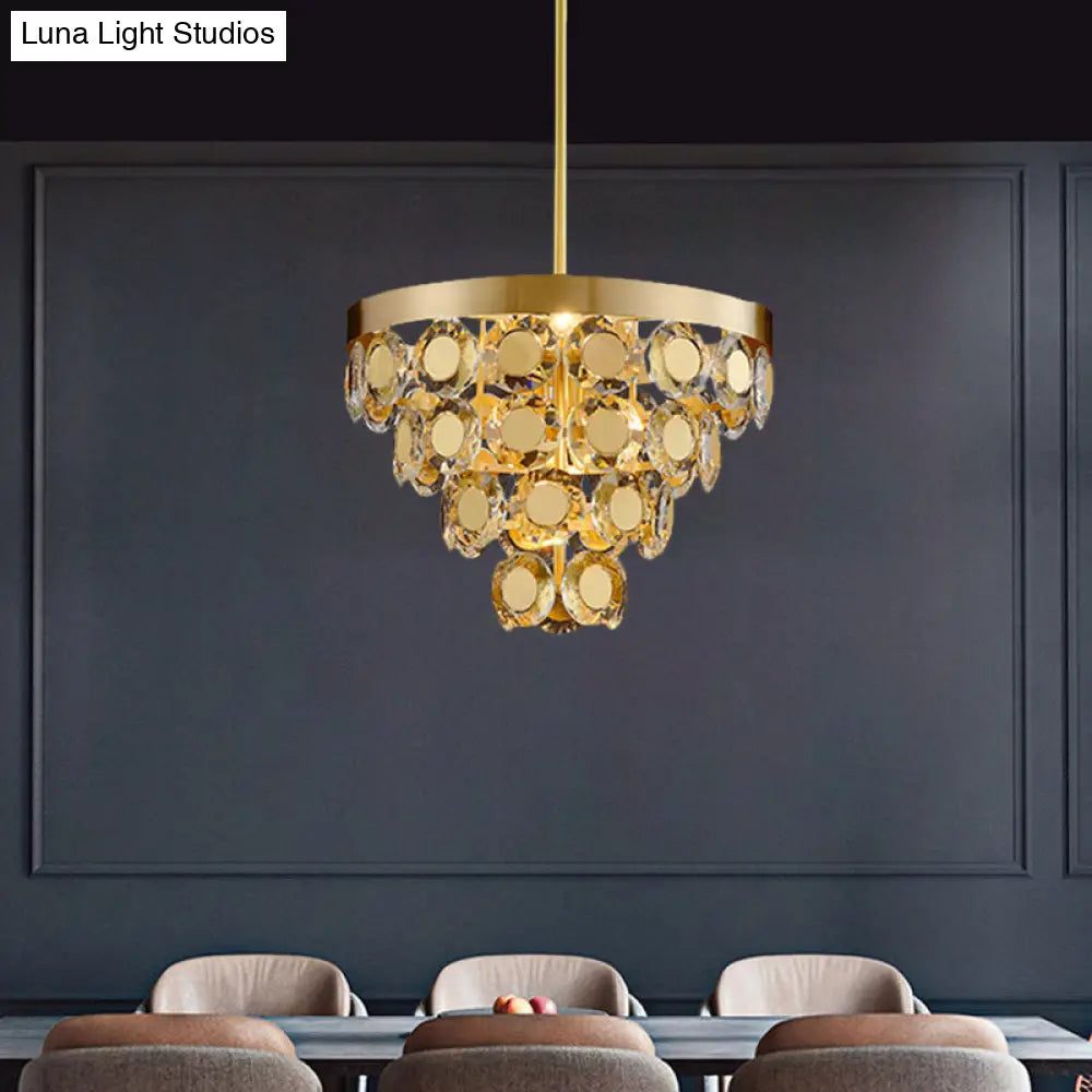 Lámpara colgante moderna de cristal en forma de cono con 5 bombillas - Acabado en latón, perfecta para restaurantes