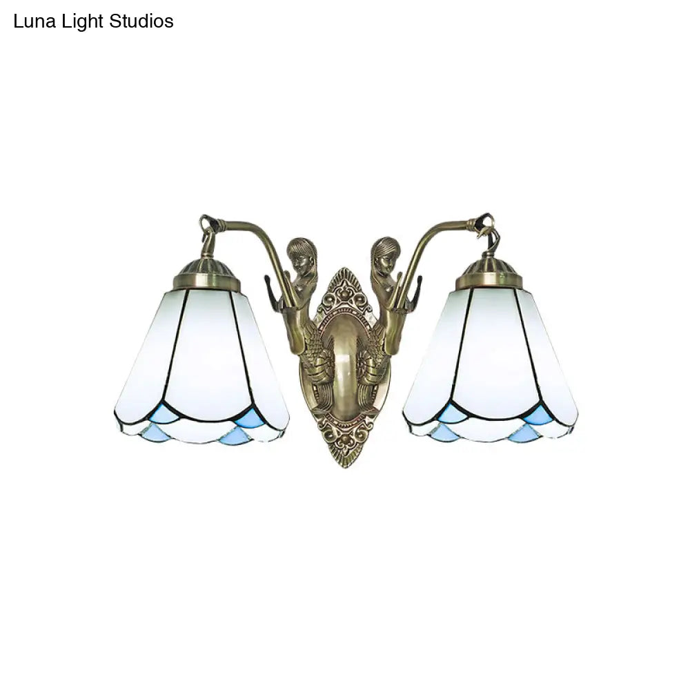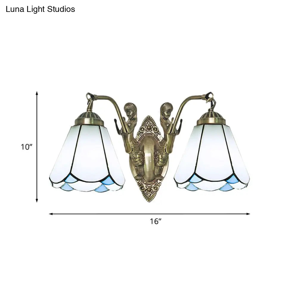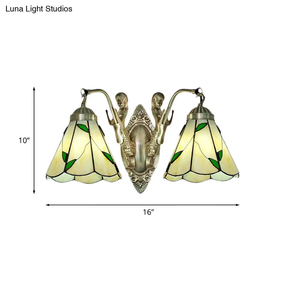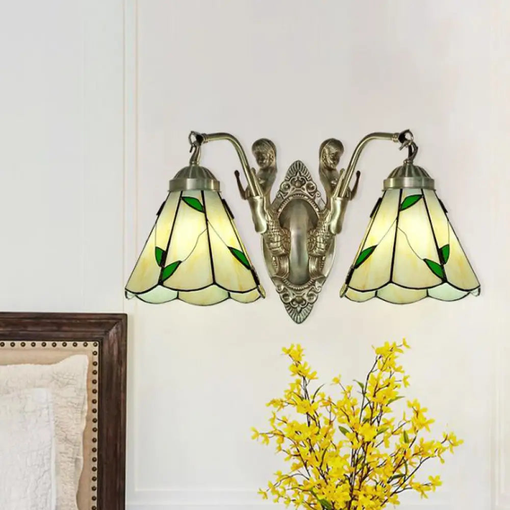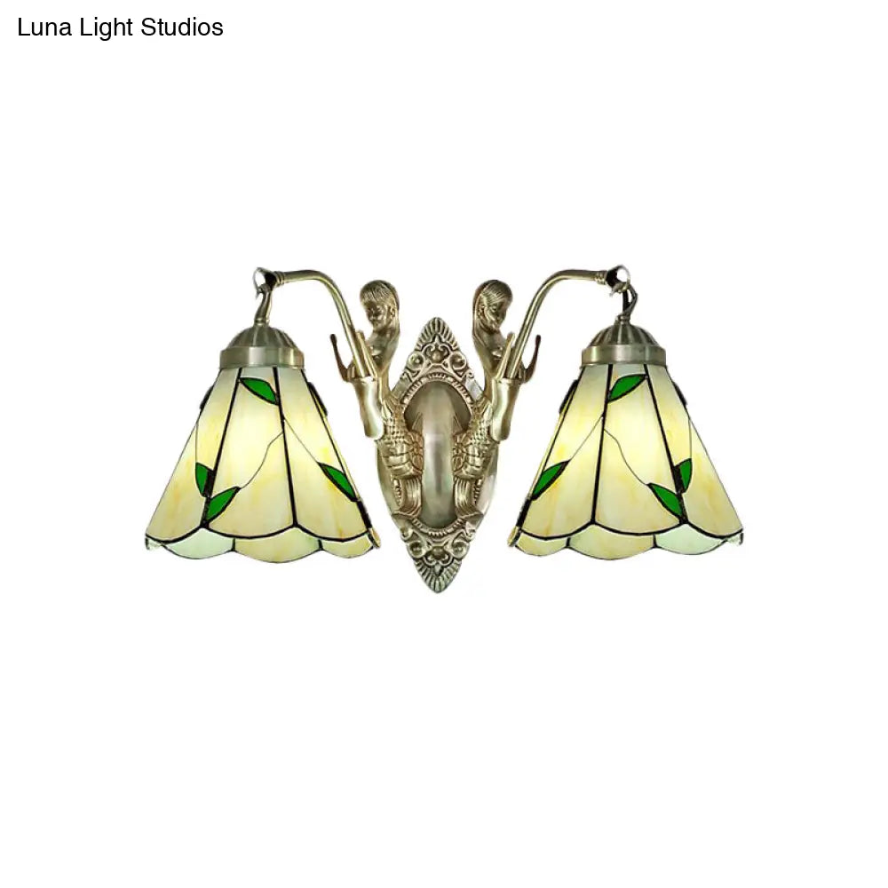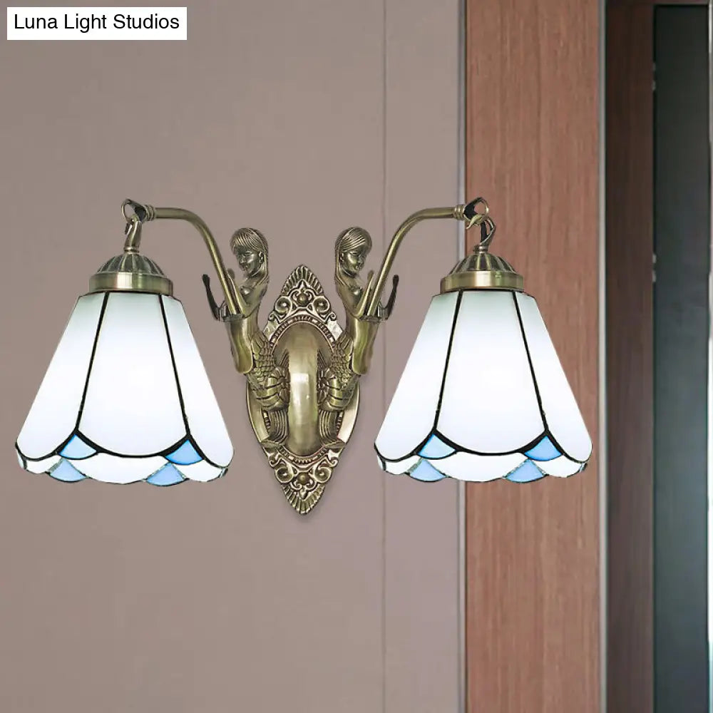 Aplique de pared cónico con doble brazo de sirena - Lámpara de pared de cristal blanco/beige