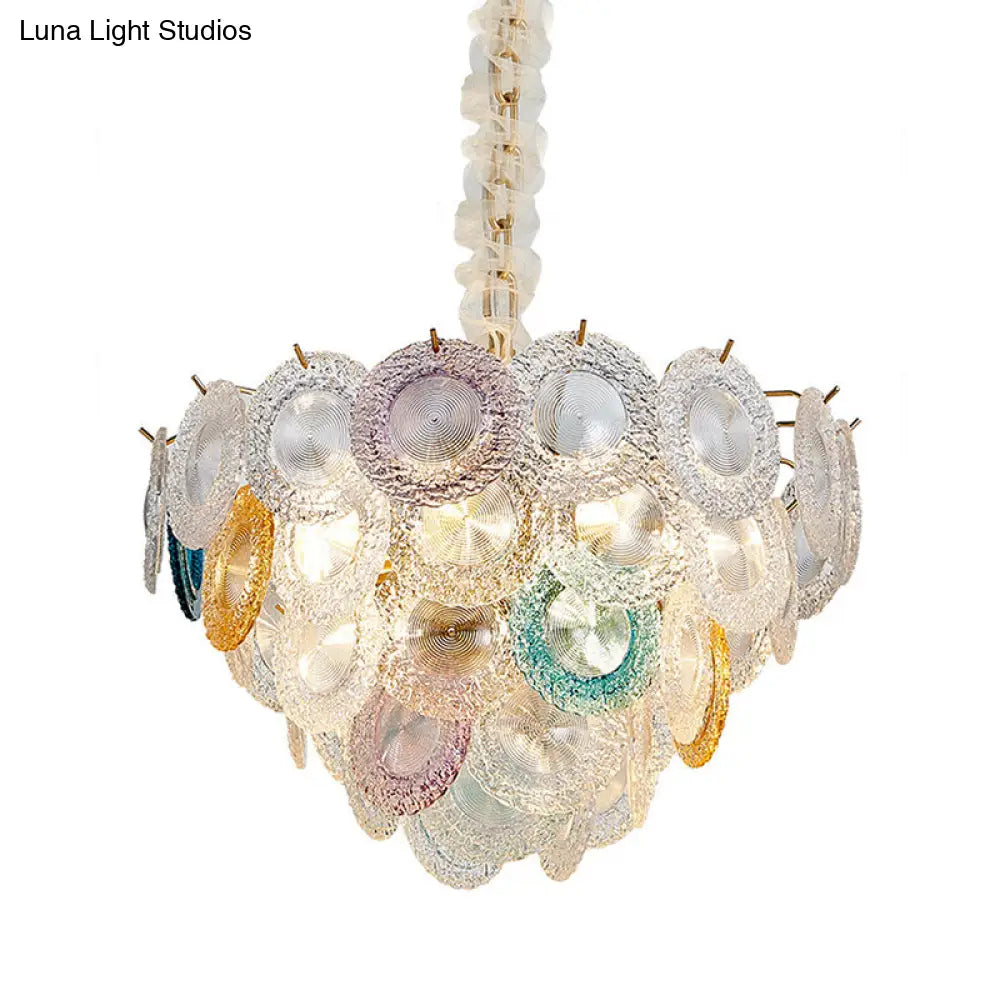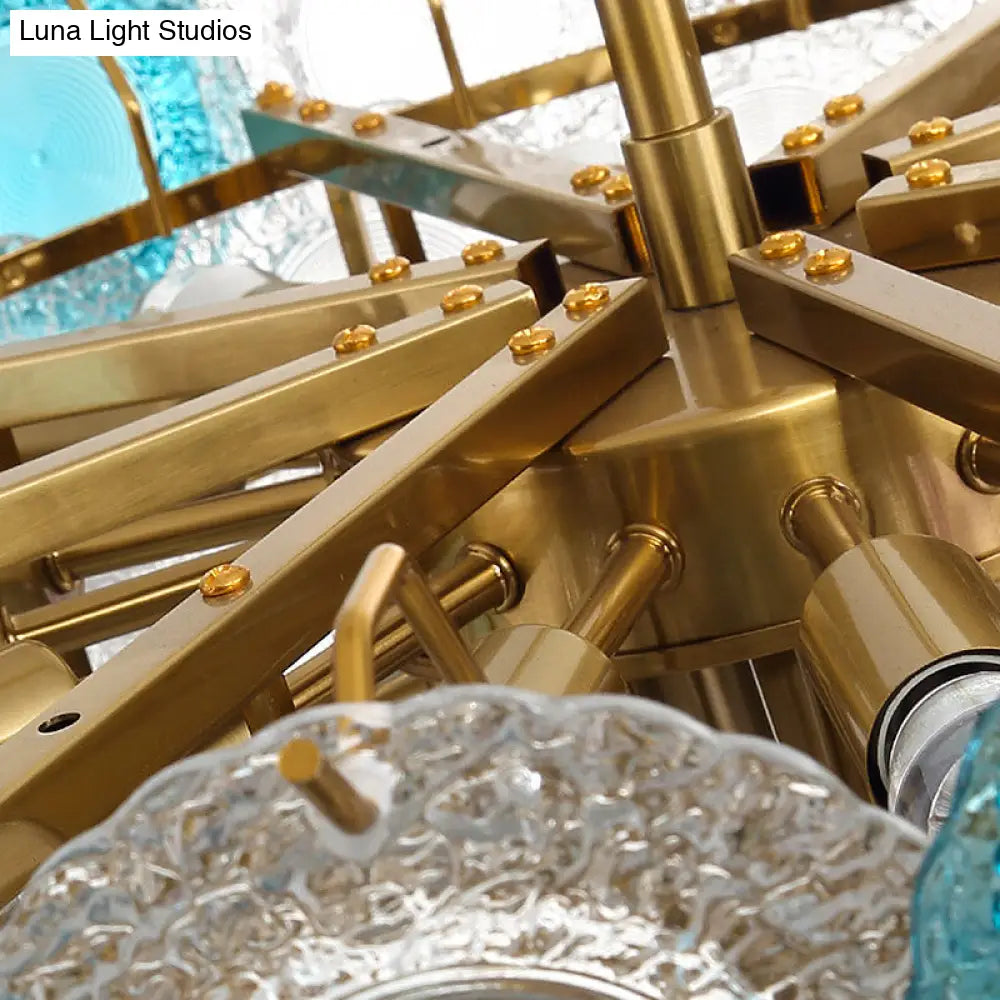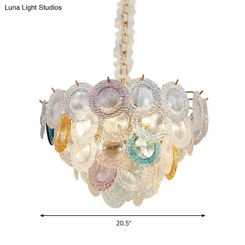 Lámpara de araña cónica moderna de cristal tallado - 12 bombillas, lámpara colgante ancha de latón
