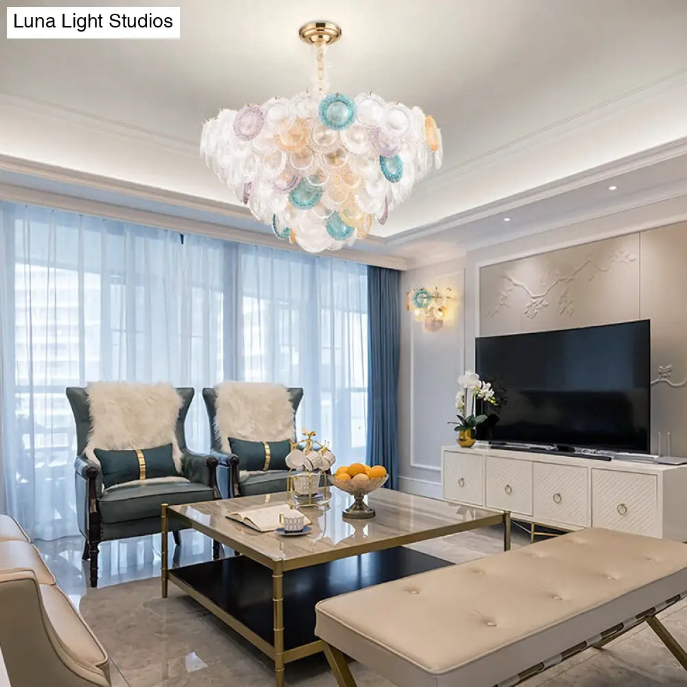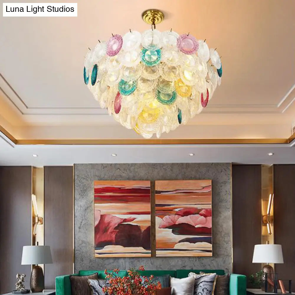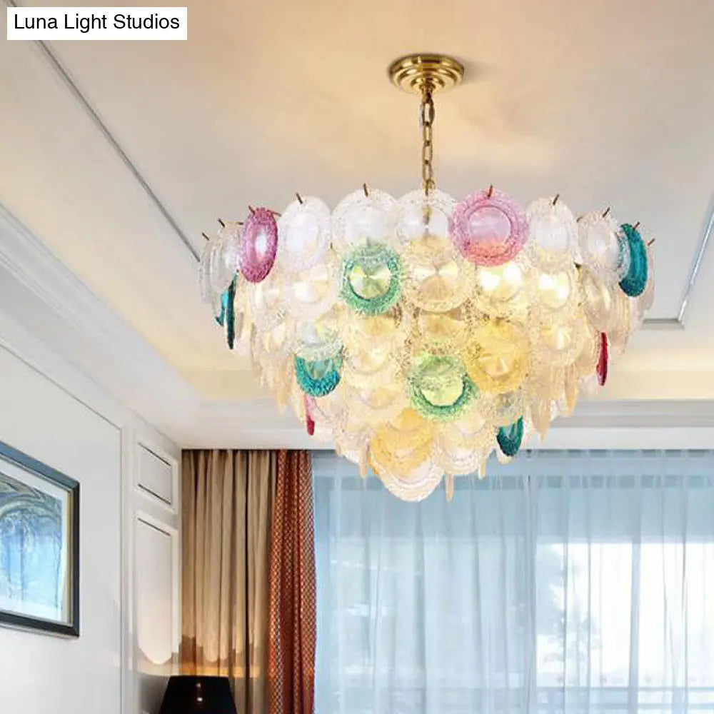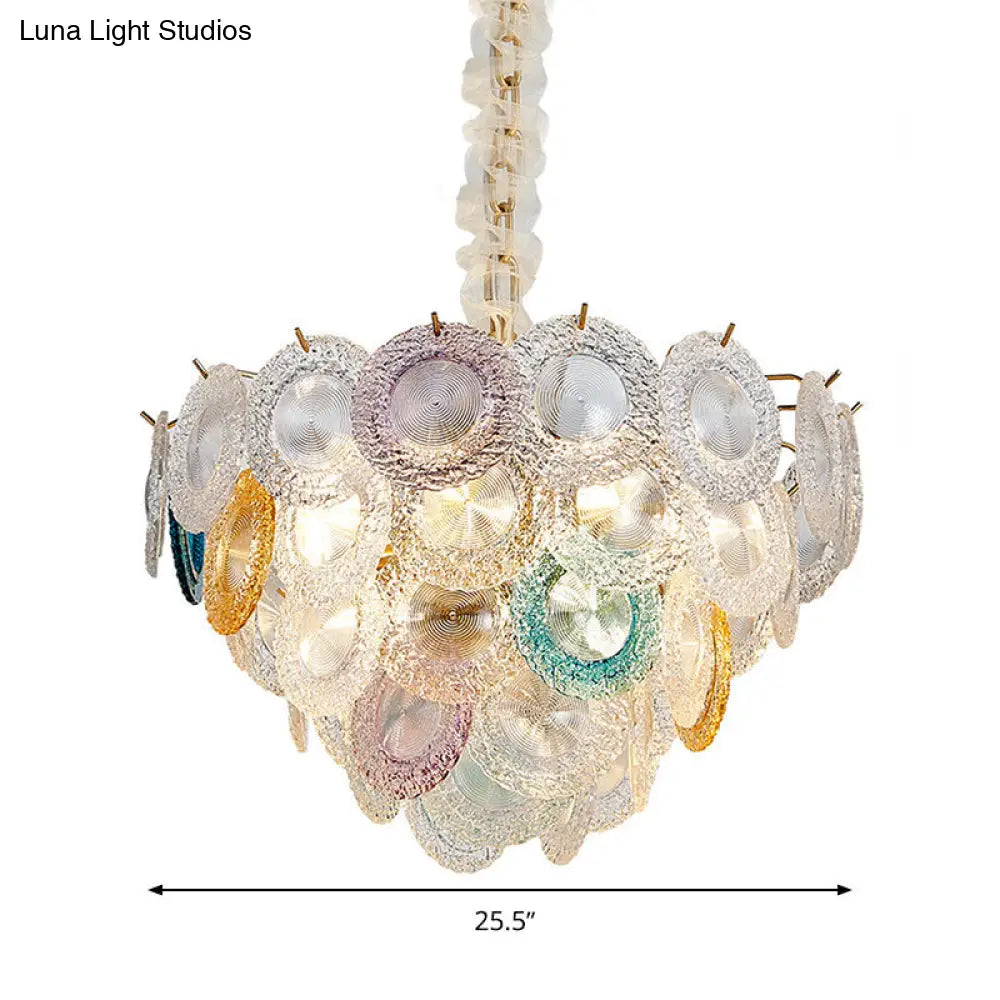 Lámpara de araña cónica moderna de cristal tallado - 12 bombillas, lámpara colgante ancha de latón