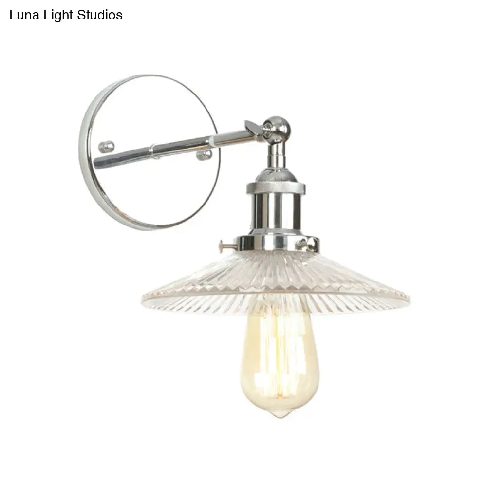 Aplique de pared cónico de cristal transparente para baño - Estilo industrial, bombilla individual, cromado