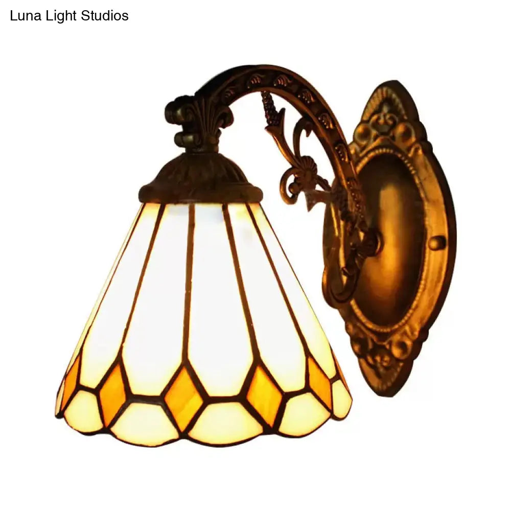 Aplique de pared cónico pequeño con pantalla festoneada, lámpara de pared Tiffany de cristal artístico en latón