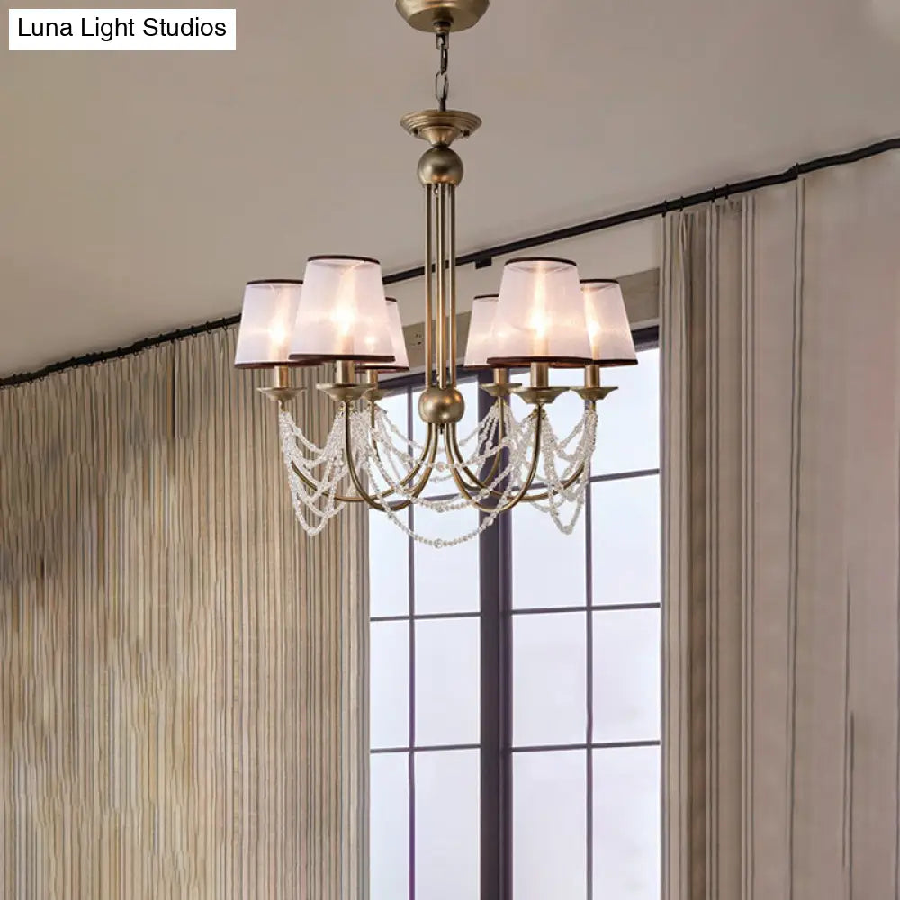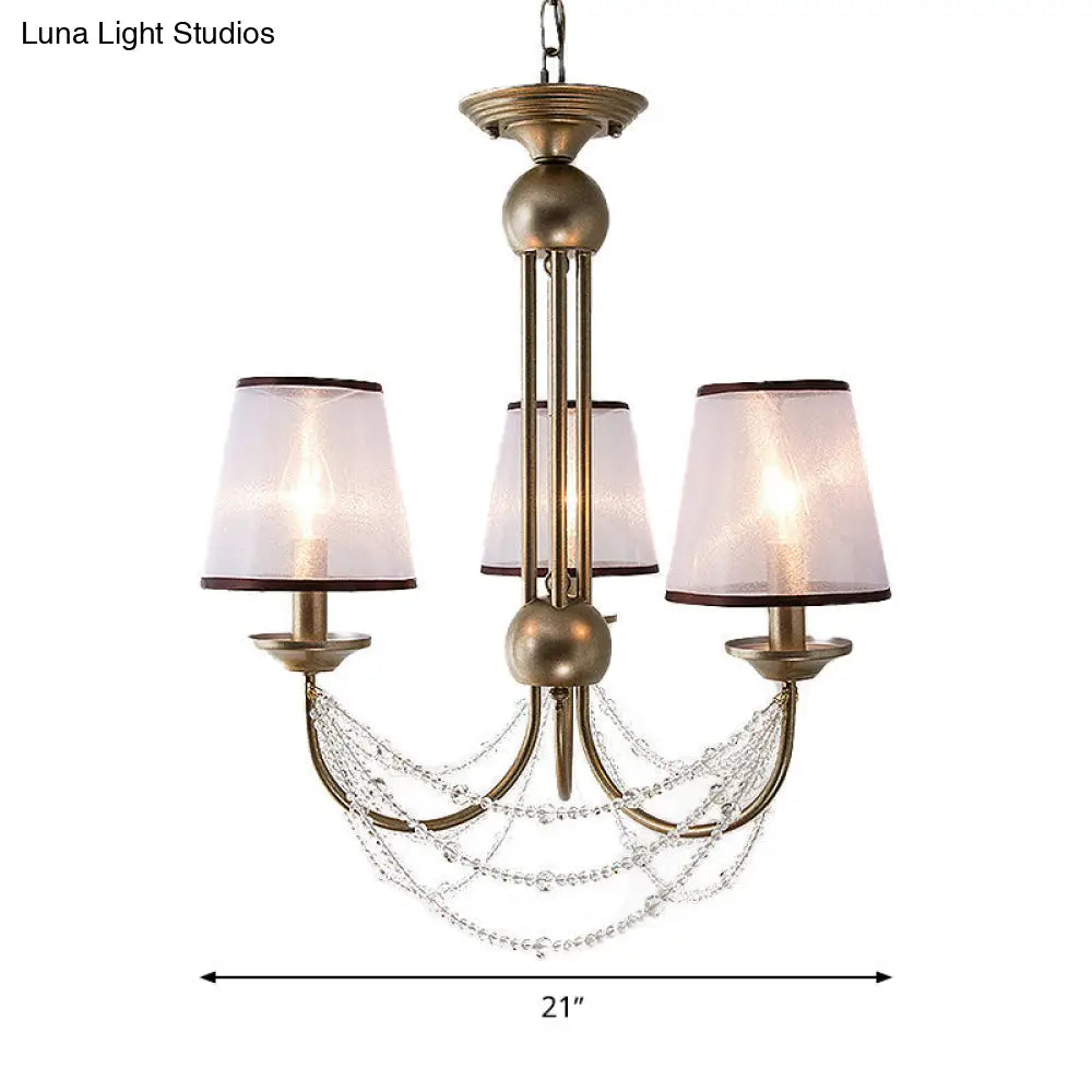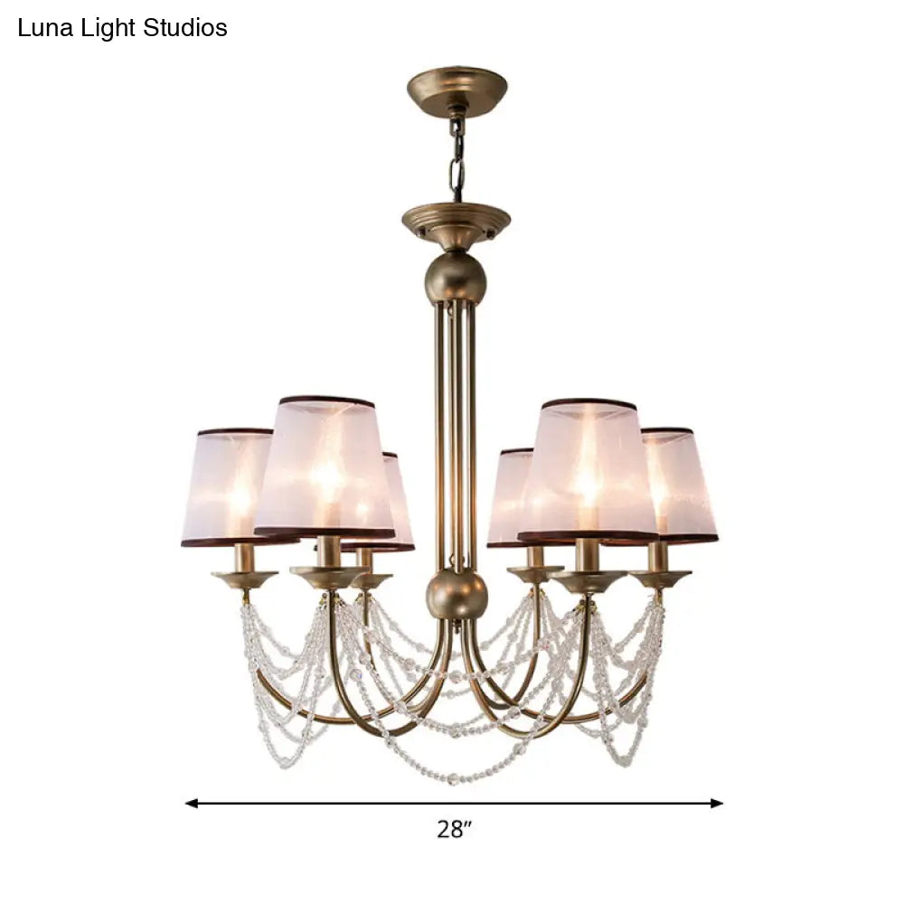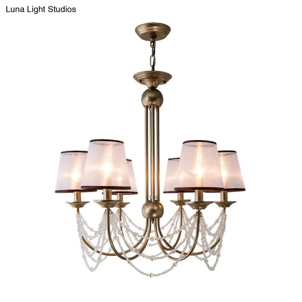 Lámpara de araña colgante cónica contemporánea - Tela, latón, cuentas de cristal - 3/6 bombillas - 53/71 cm de ancho