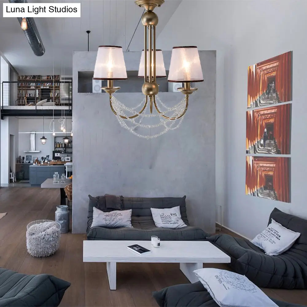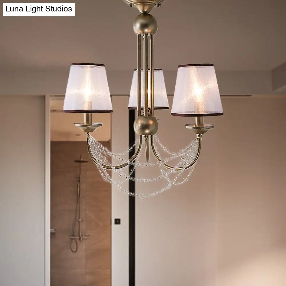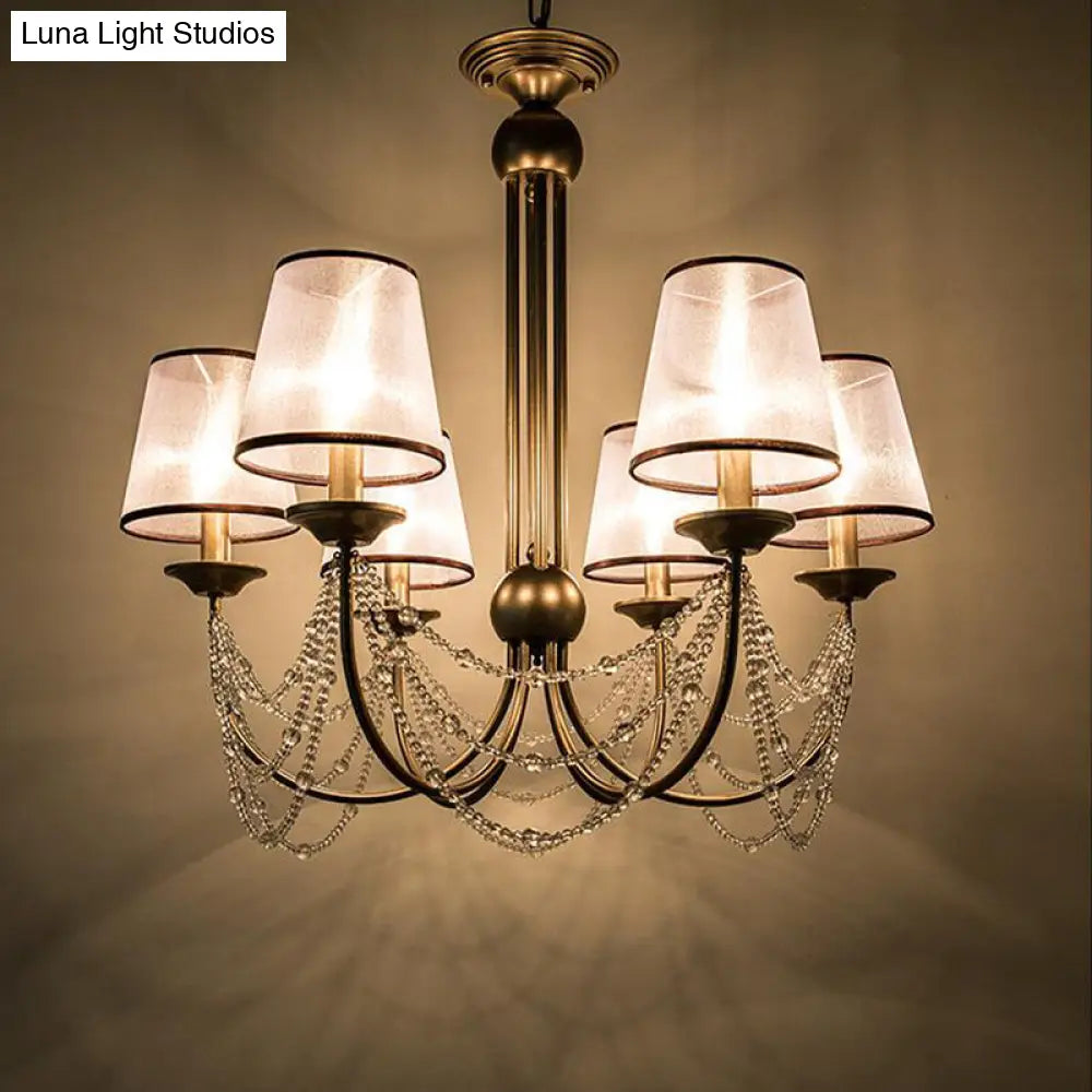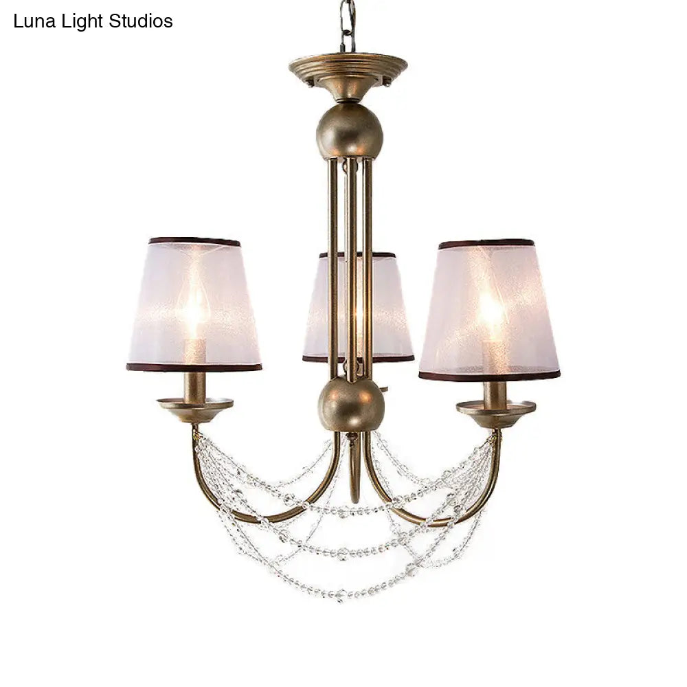 Lámpara de araña colgante cónica contemporánea - Tela, latón, cuentas de cristal - 3/6 bombillas - 53/71 cm de ancho