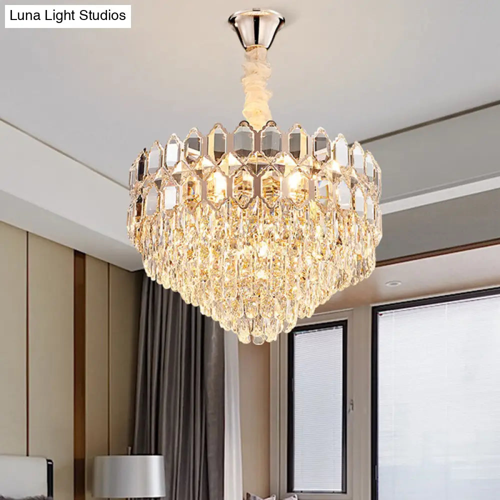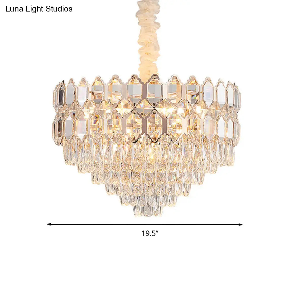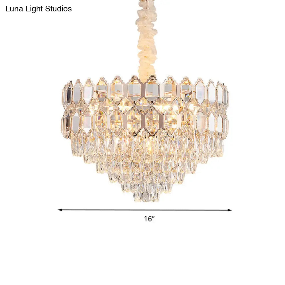 Lámpara colgante cónica moderna: Araña de cristal K9, 6/8 luces, color champán, 40,6/49,5 cm de ancho