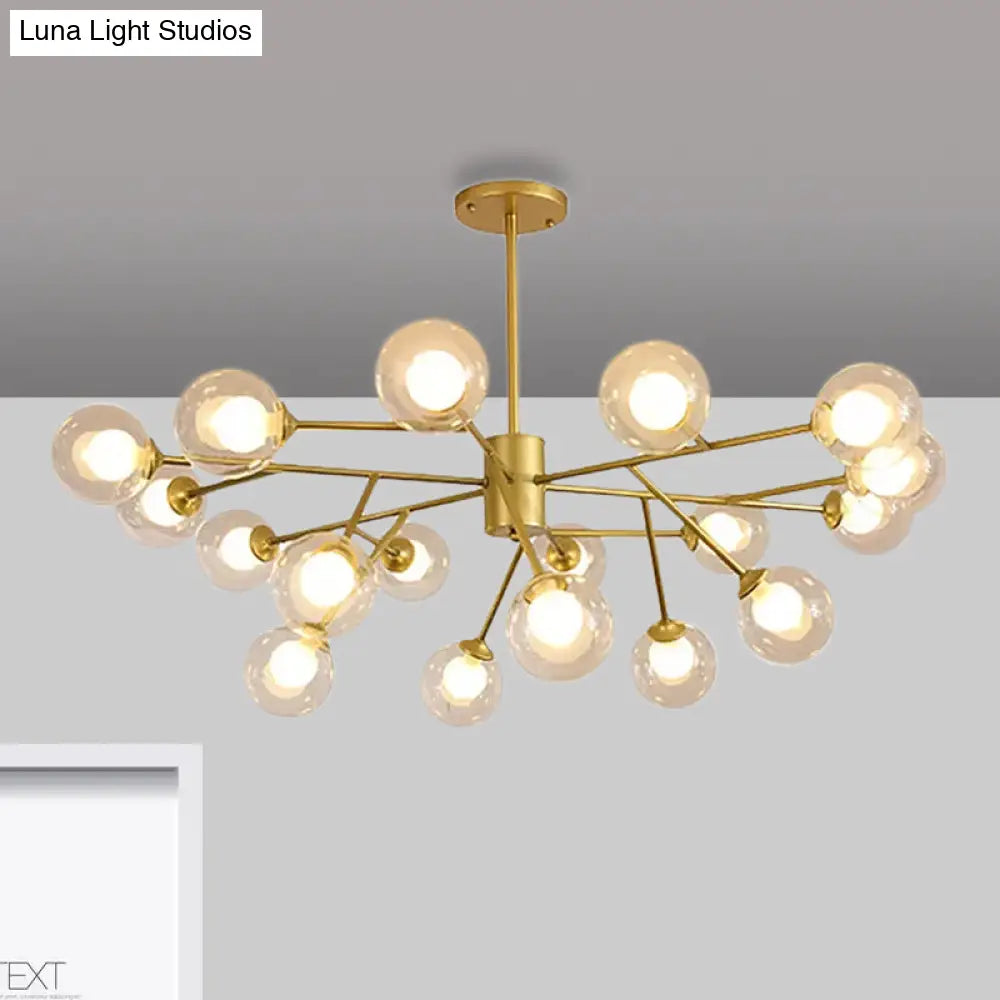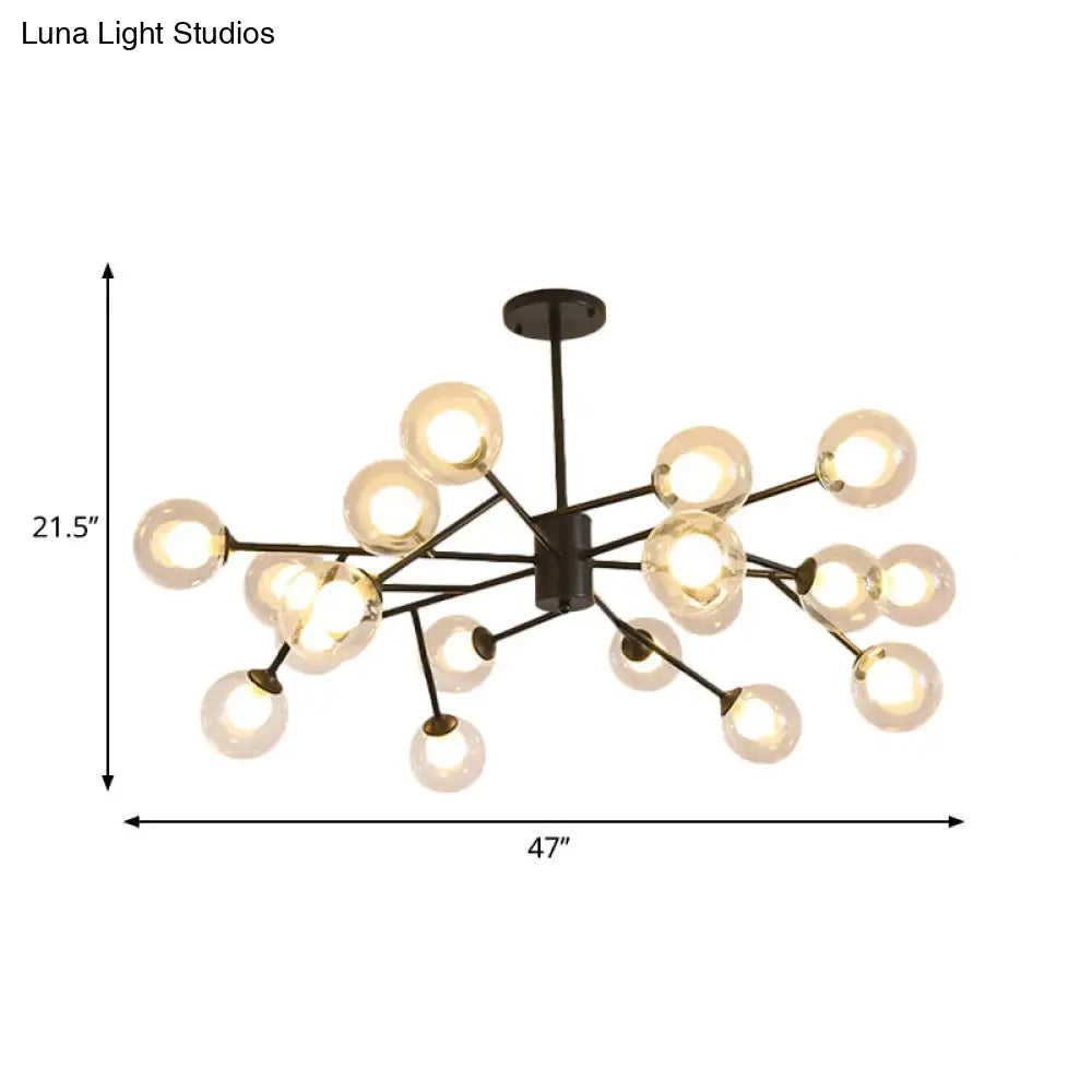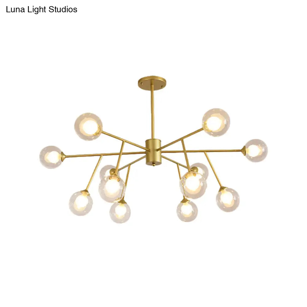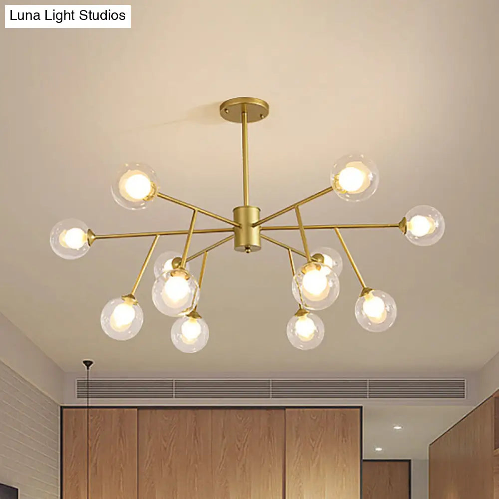 Lámpara de techo colgante moderna en negro y dorado con pantalla de cristal transparente - 12/15/18 luces