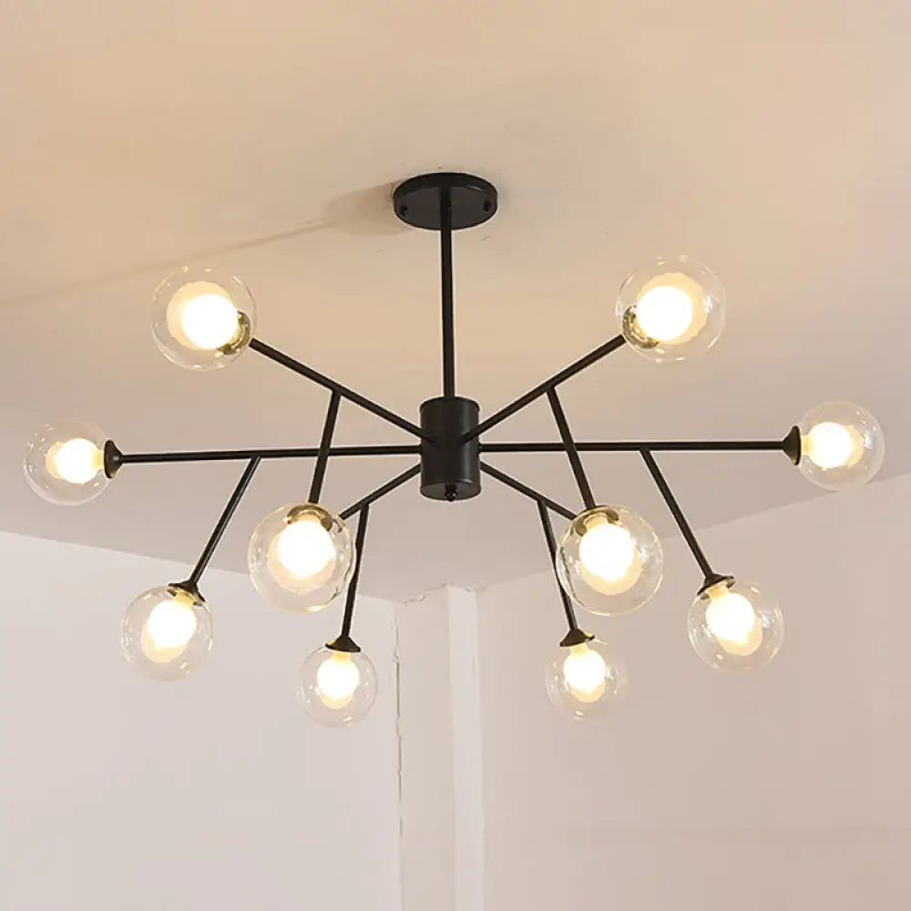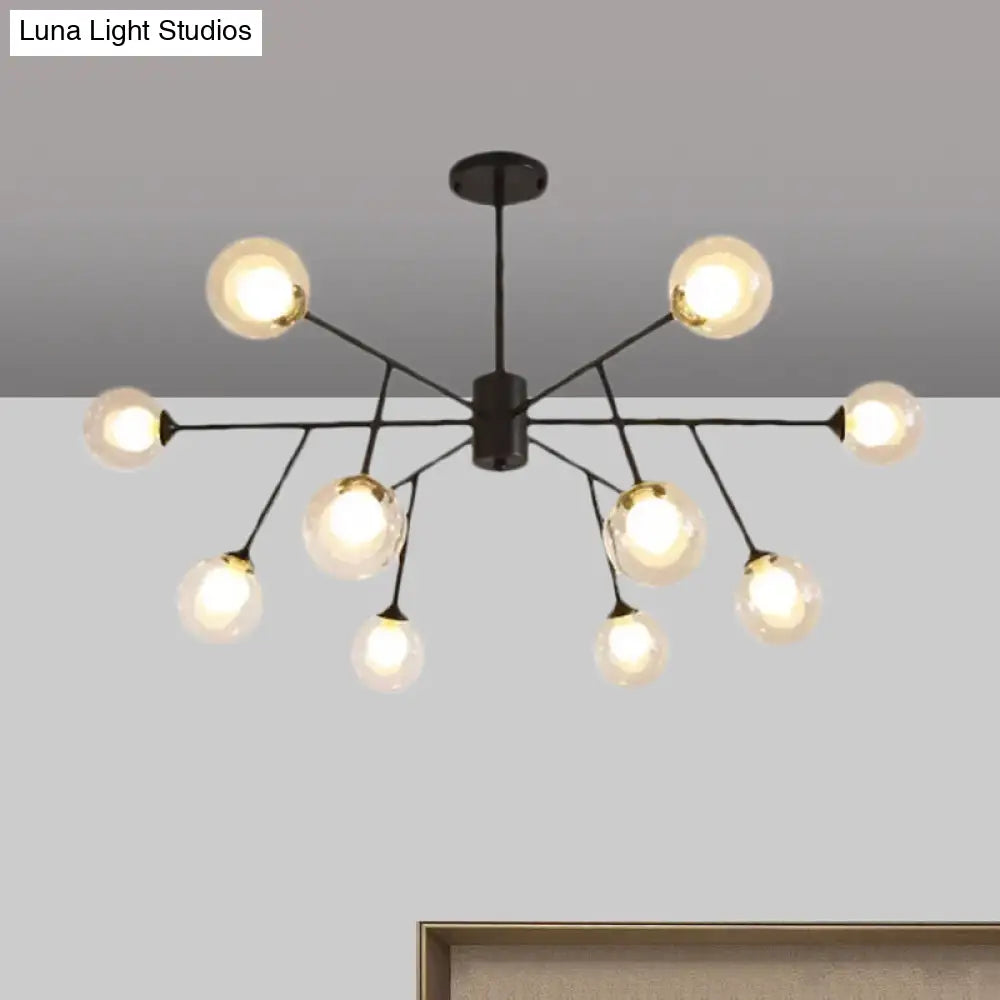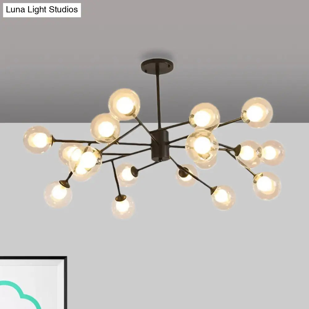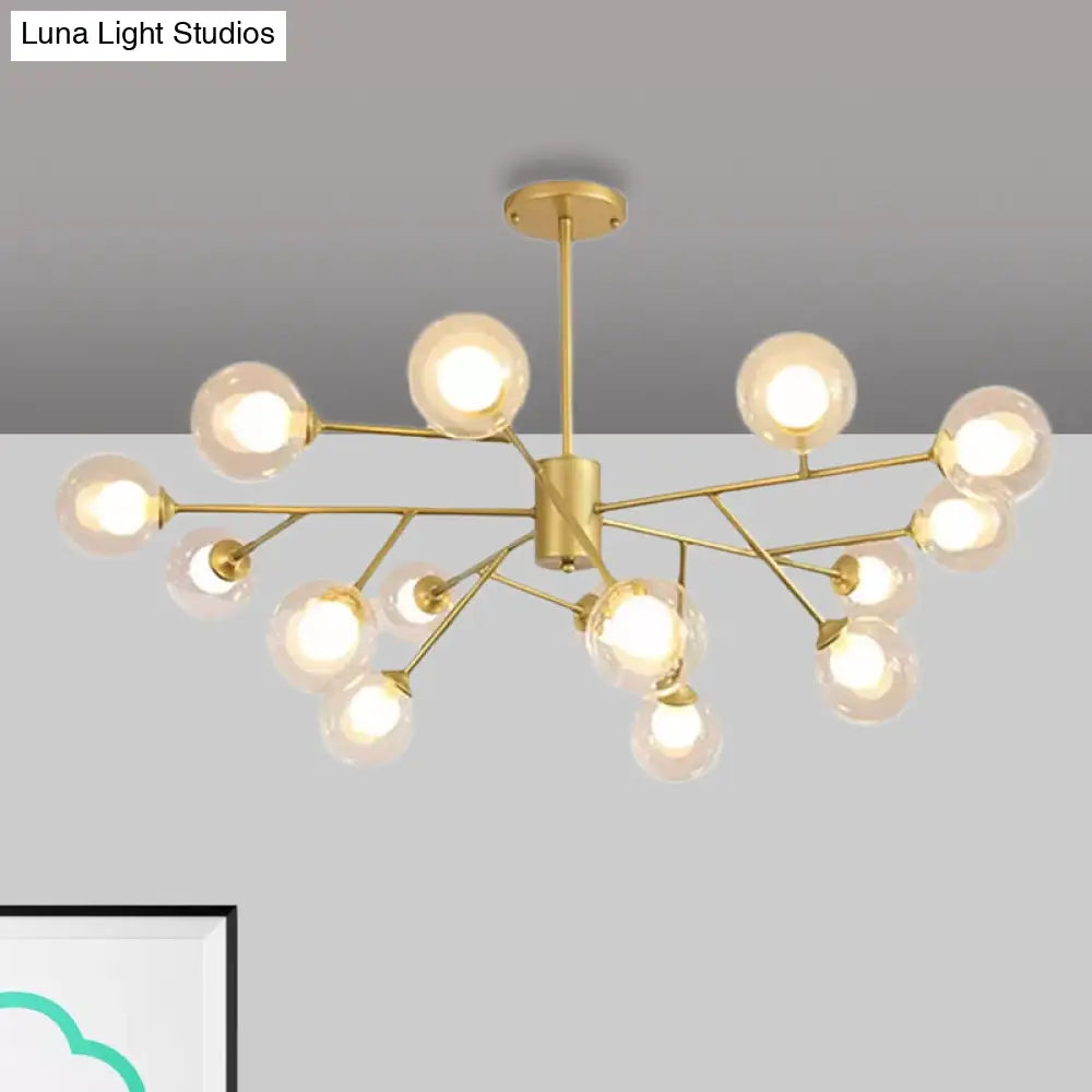 Lámpara de techo colgante moderna en negro y dorado con pantalla de cristal transparente - 12/15/18 luces