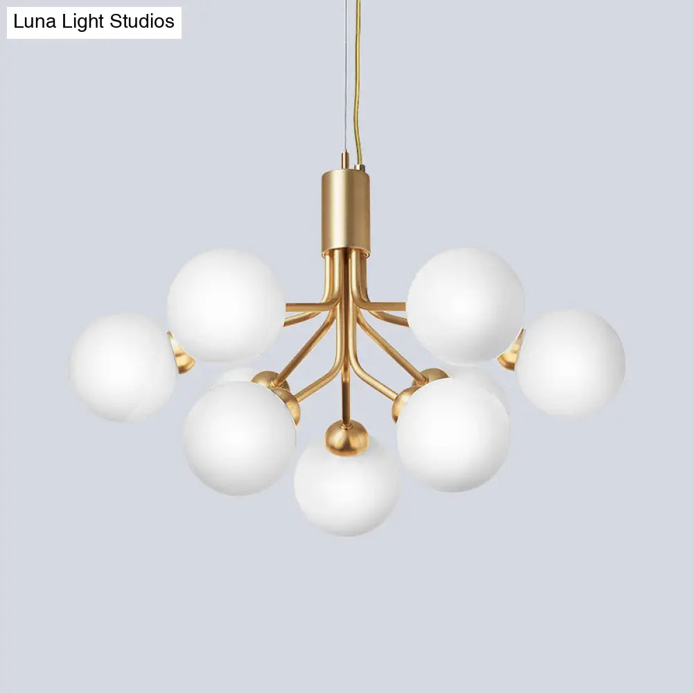 Lámpara de araña moderna de latón con pantallas de cristal color crema - Lámpara colgante molecular de 9 bombillas