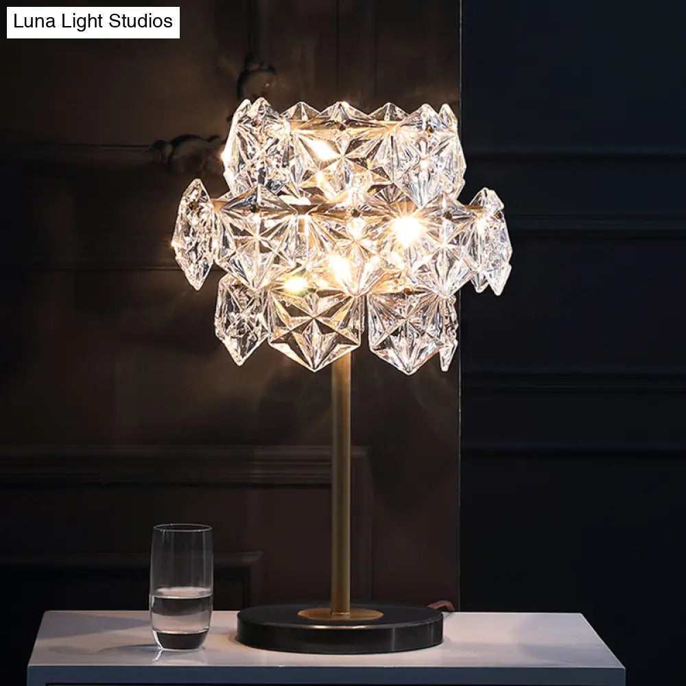 Lámpara de lectura contemporánea de cristal con forma de flor de hielo dorada – Iluminación de tarea hexagonal, 6 cabezales