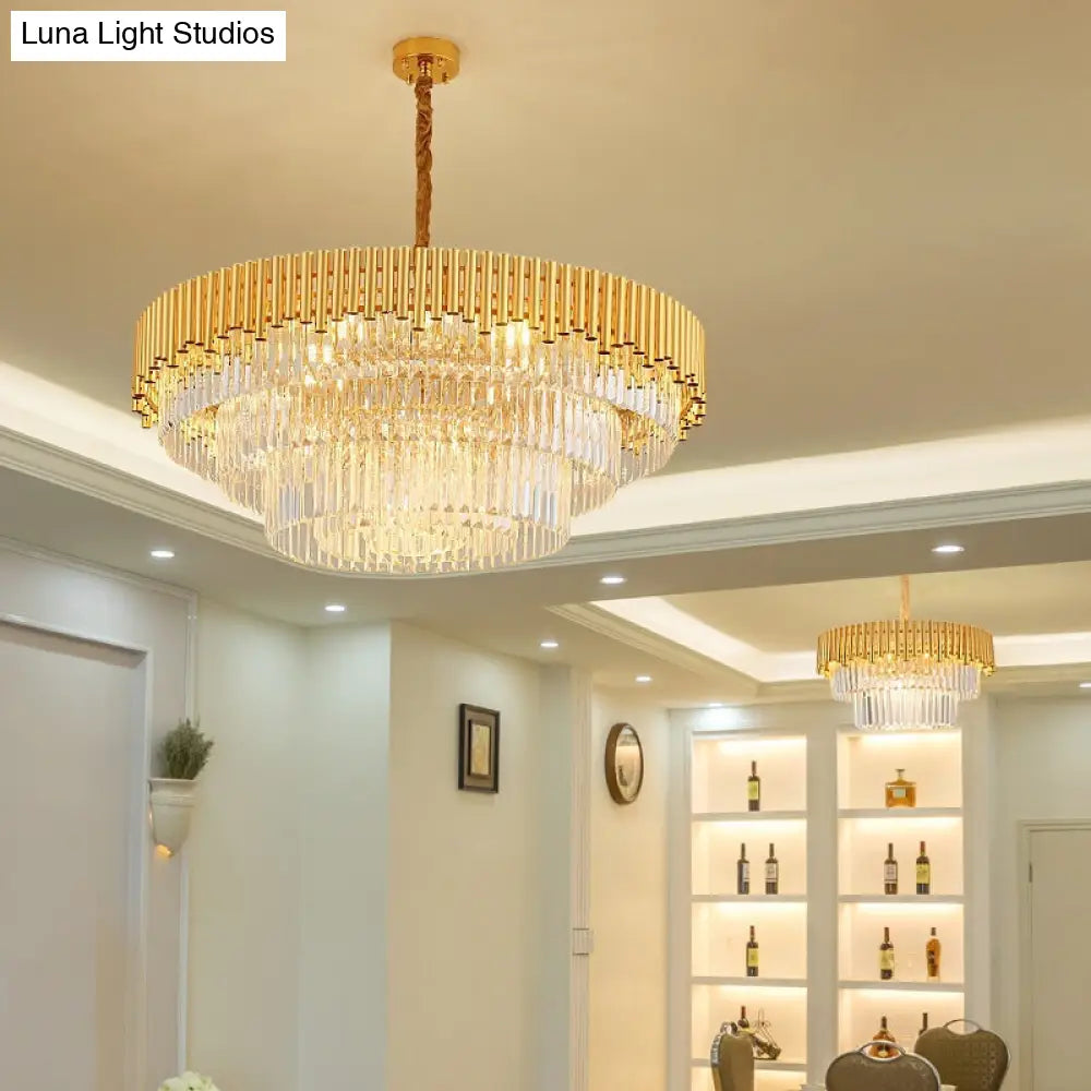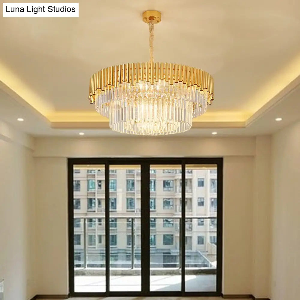 Lámpara de araña moderna Prism Block - Lámpara de cristal y metal con múltiples luces y acabado en latón