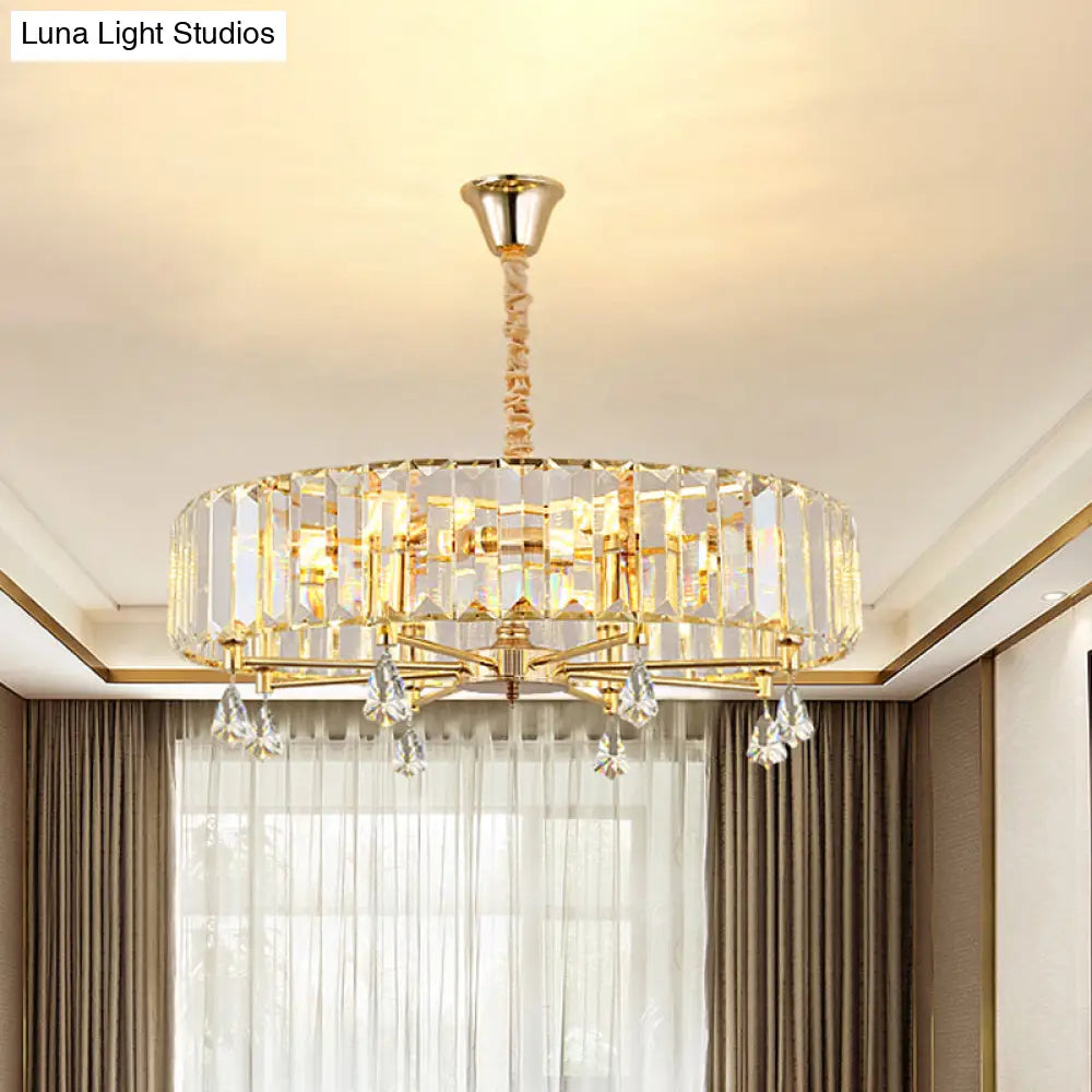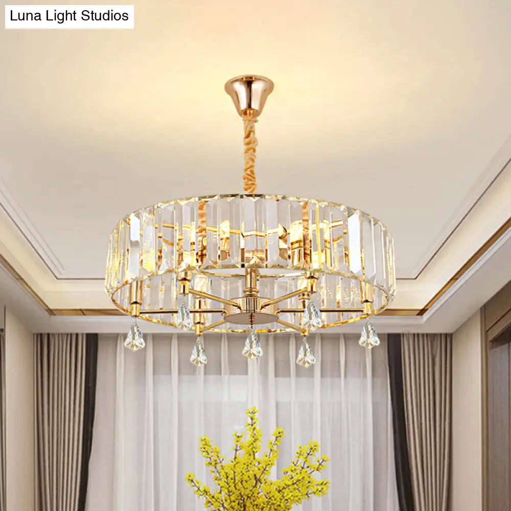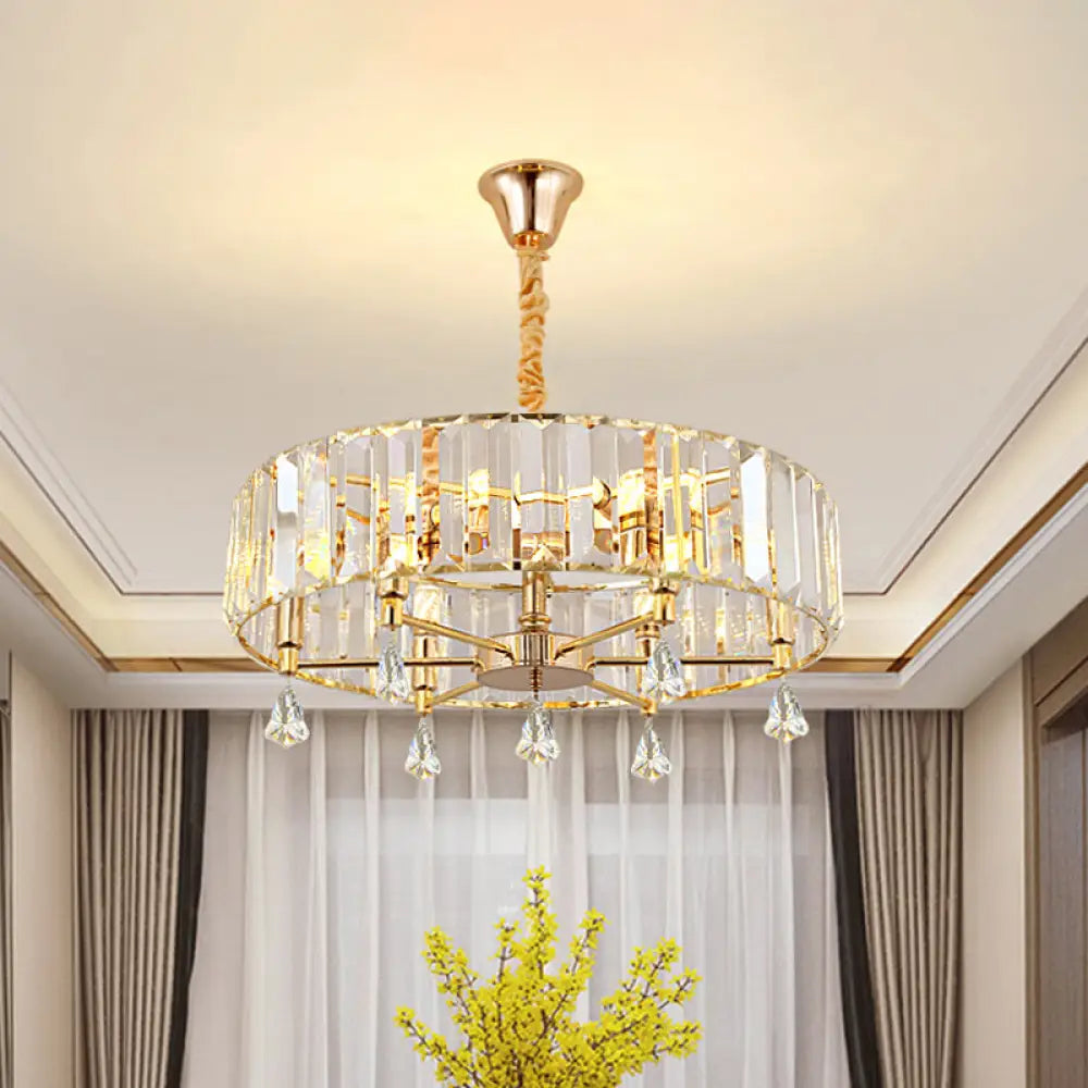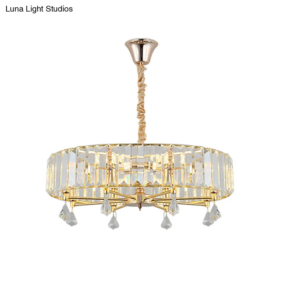 Lámpara de techo redonda moderna dorada con colgante de cristal - 6/8 luces
