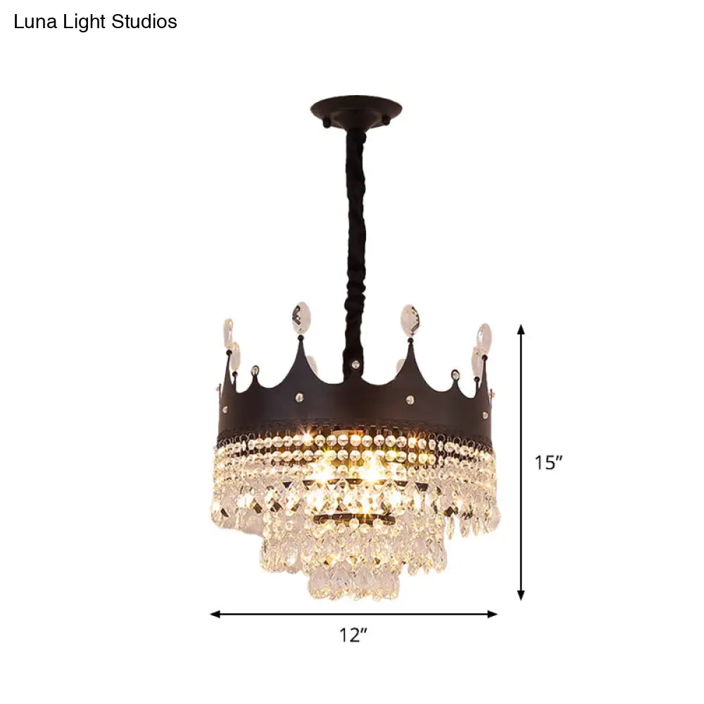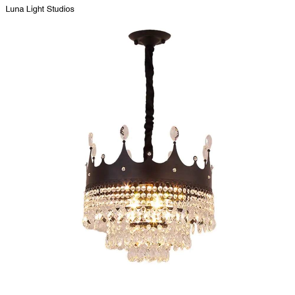 Lámpara de araña colgante contemporánea negra de 4 bombillas con gota de cristal - Iluminación de suspensión metálica en forma de corona
