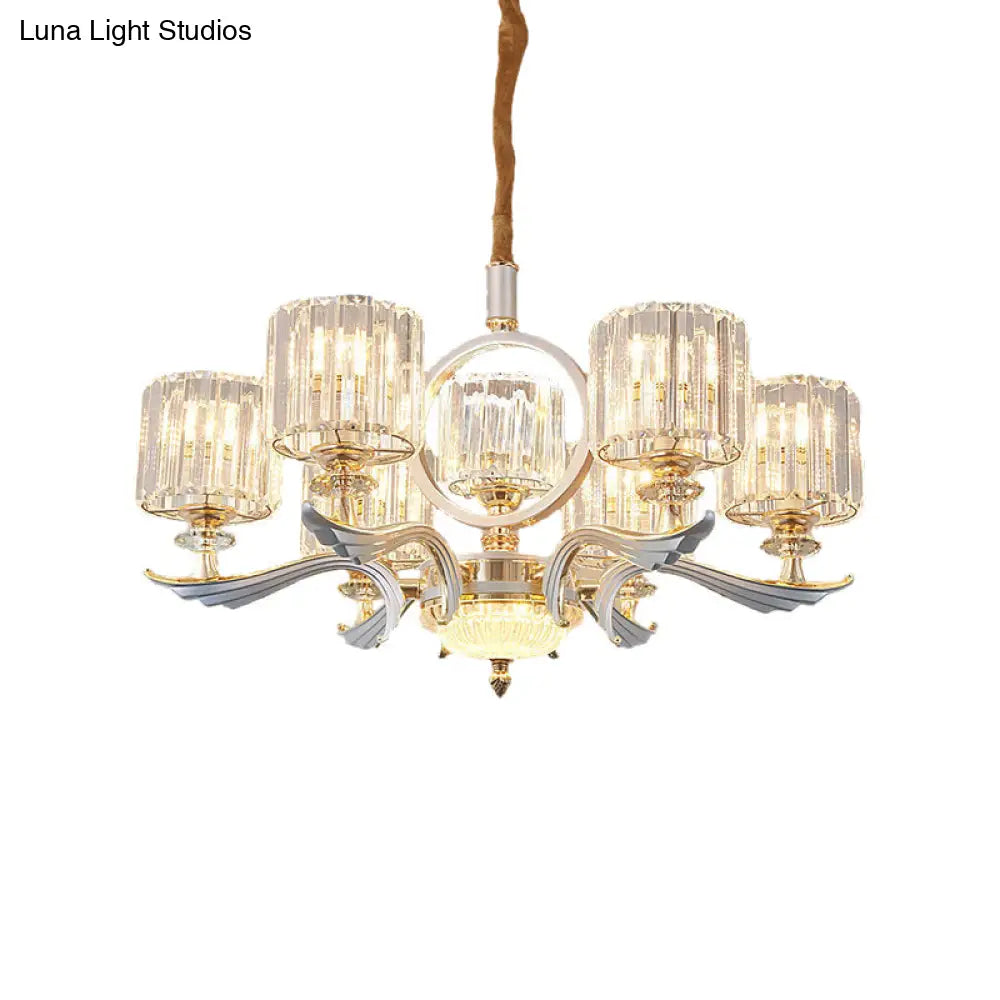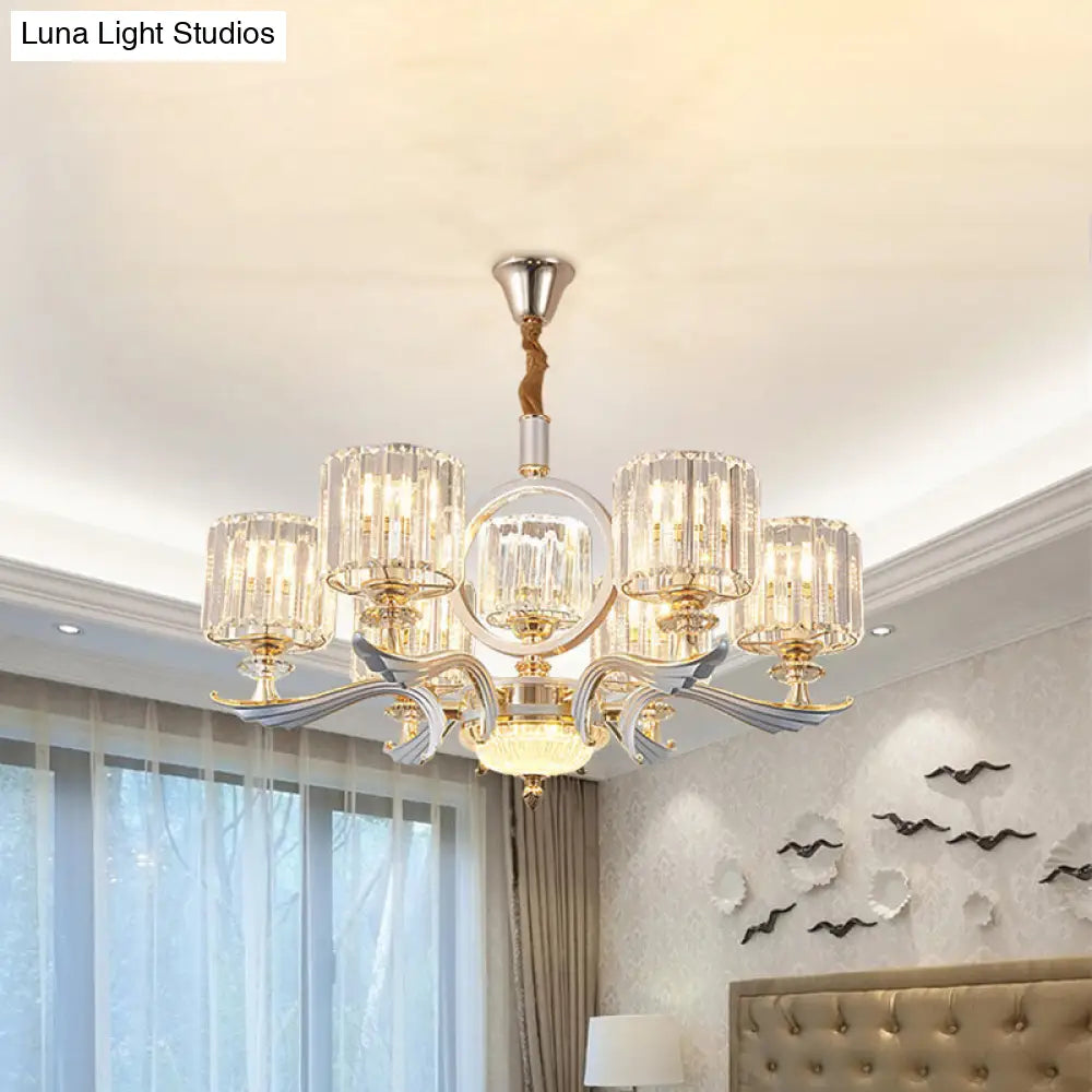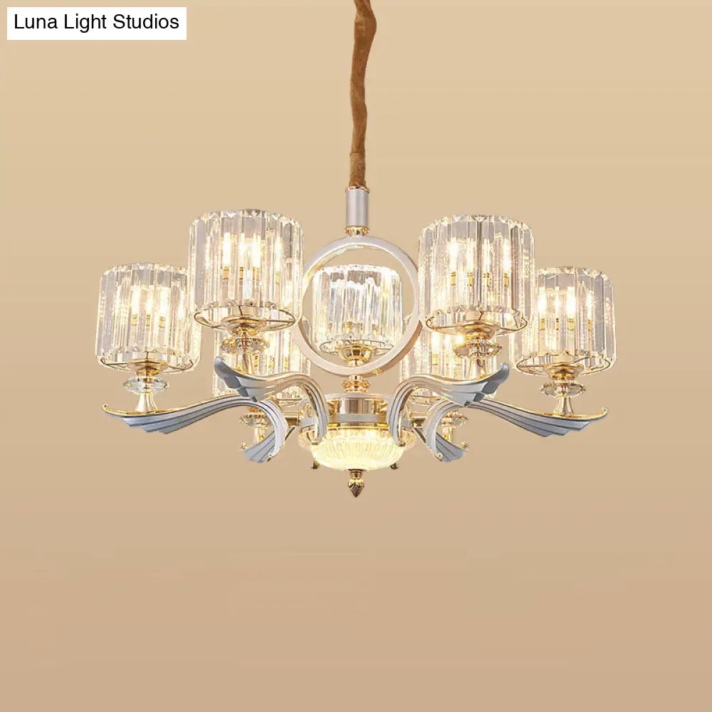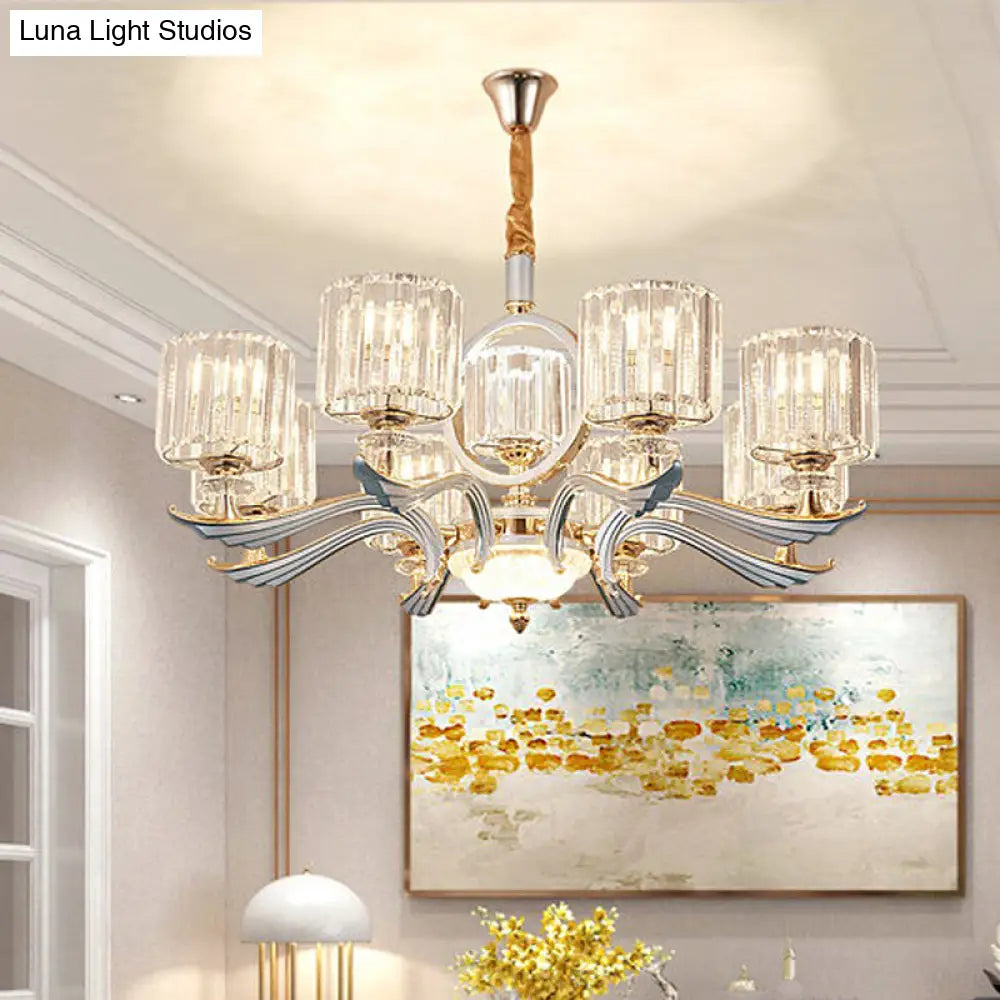 Lámpara de araña colgante cilíndrica contemporánea con bloques de cristal - Plateada, 6/8 cabezales - Ideal para comedores