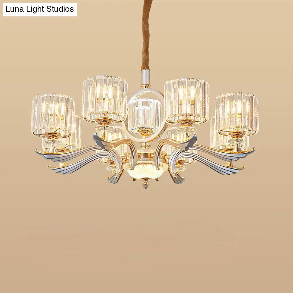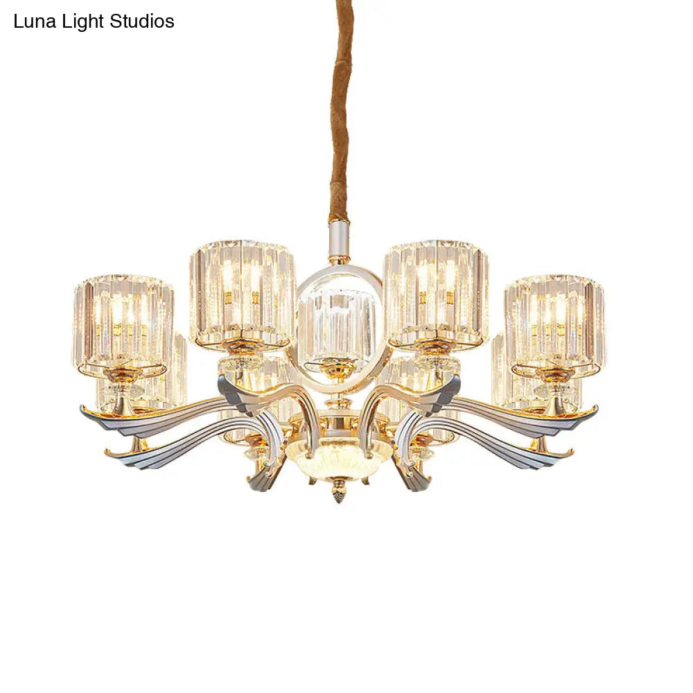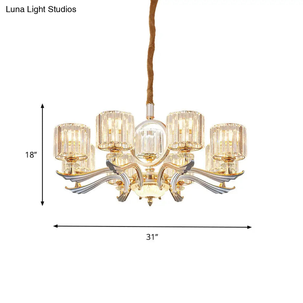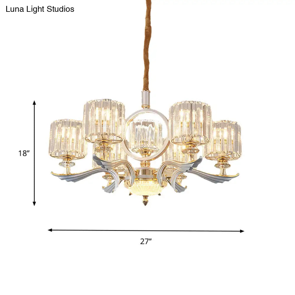 Lámpara de araña colgante cilíndrica contemporánea con bloques de cristal - Plateada, 6/8 cabezales - Ideal para comedores