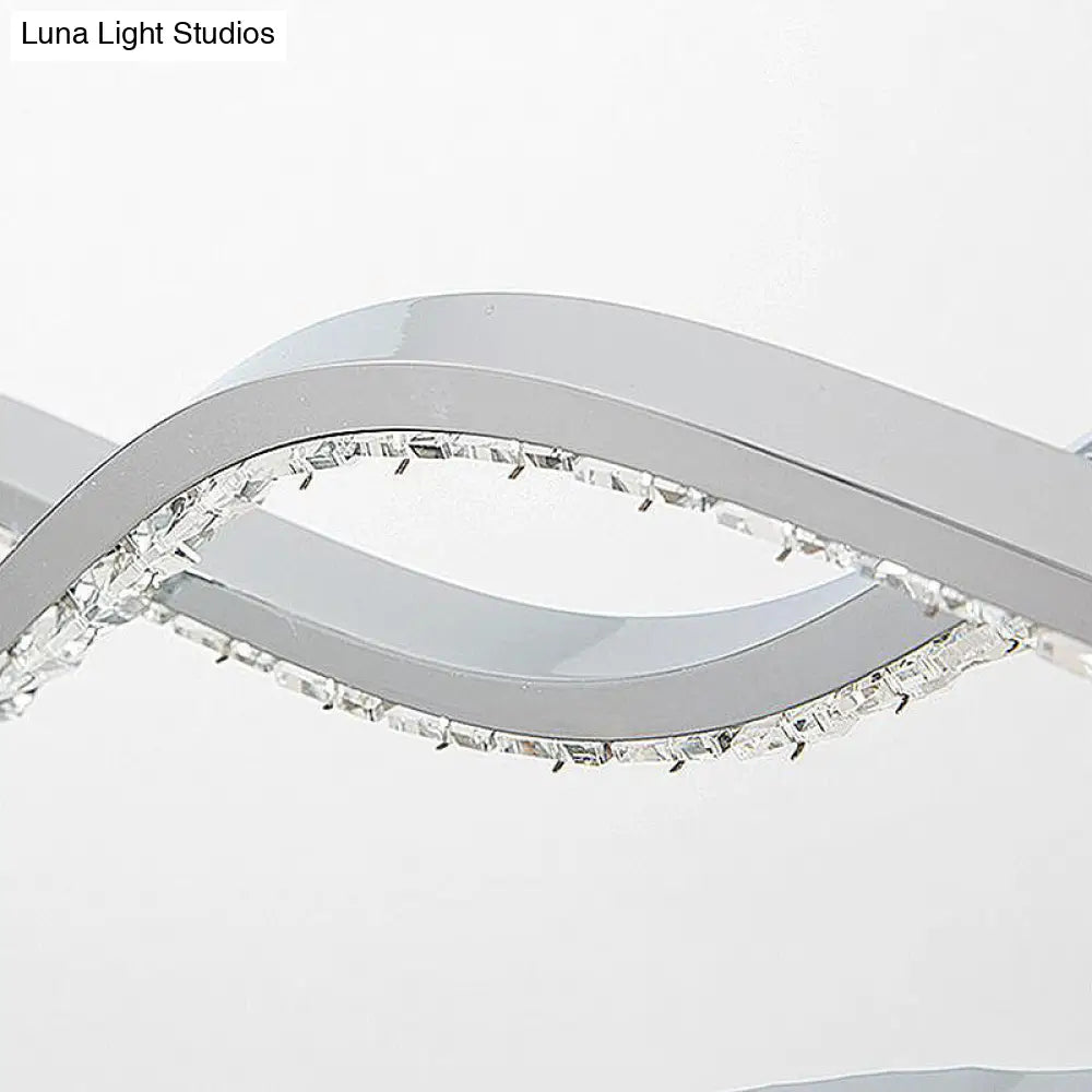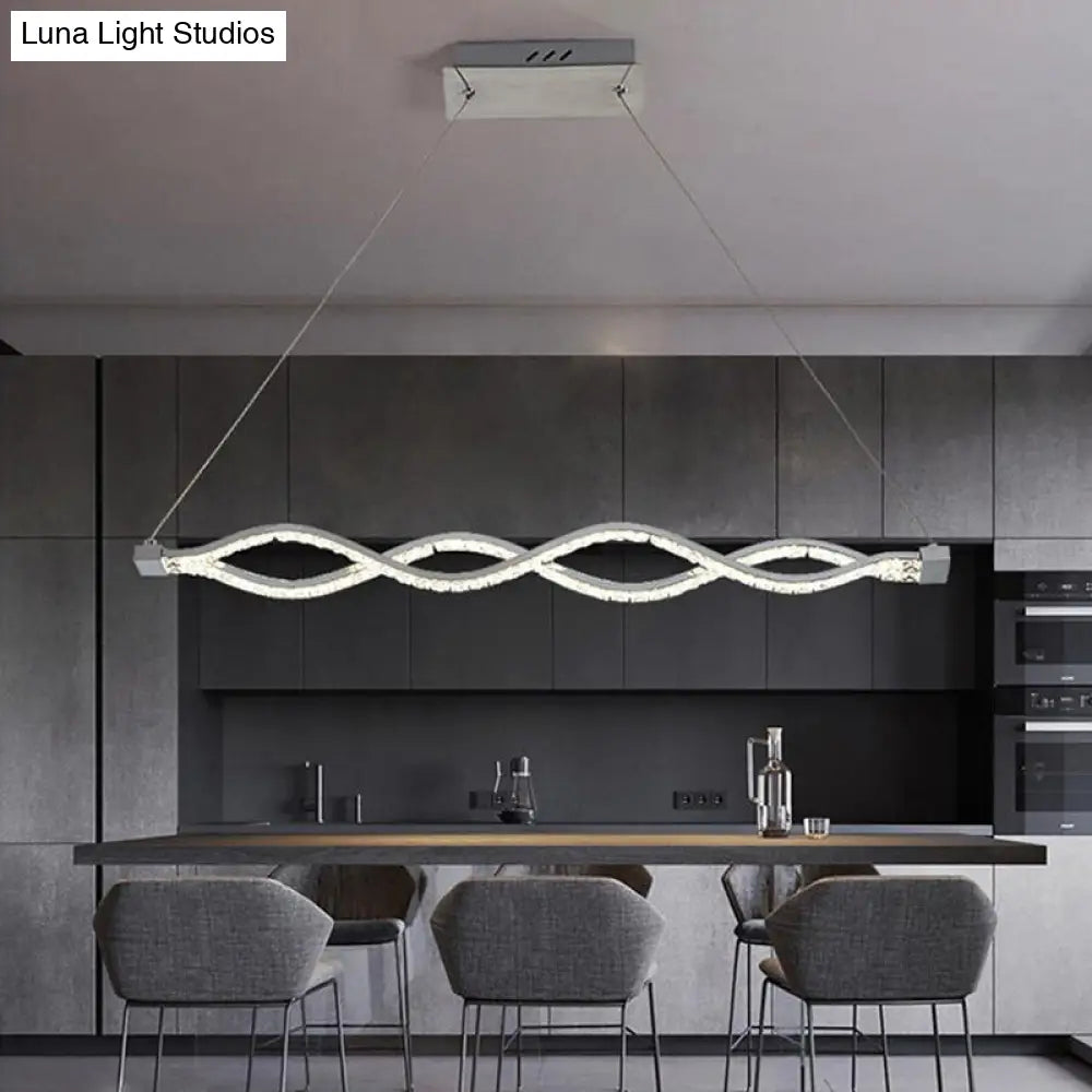 Lámpara de techo colgante moderna LED plateada con forma de espiral de cristal - Iluminación para comedor