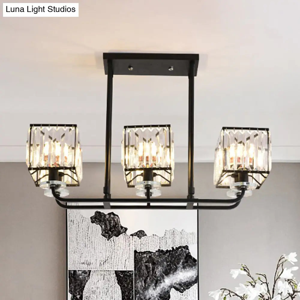 Lámpara de araña vintage de cristal prismático - 6/8 luces - Lámpara colgante negra para sala de estar