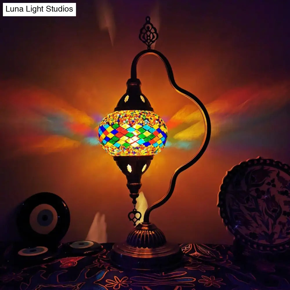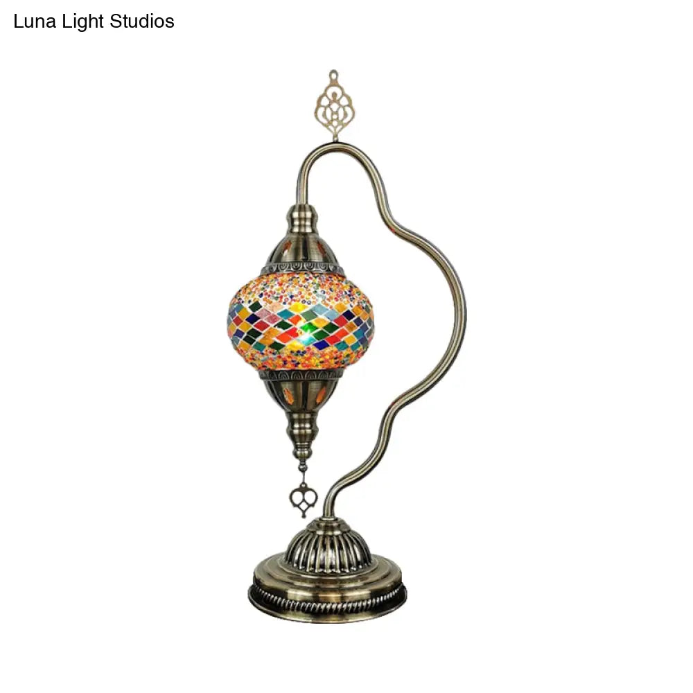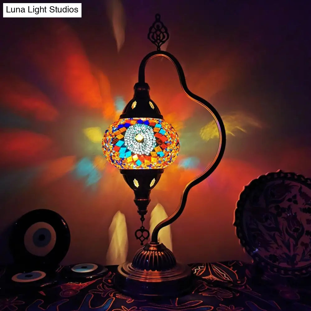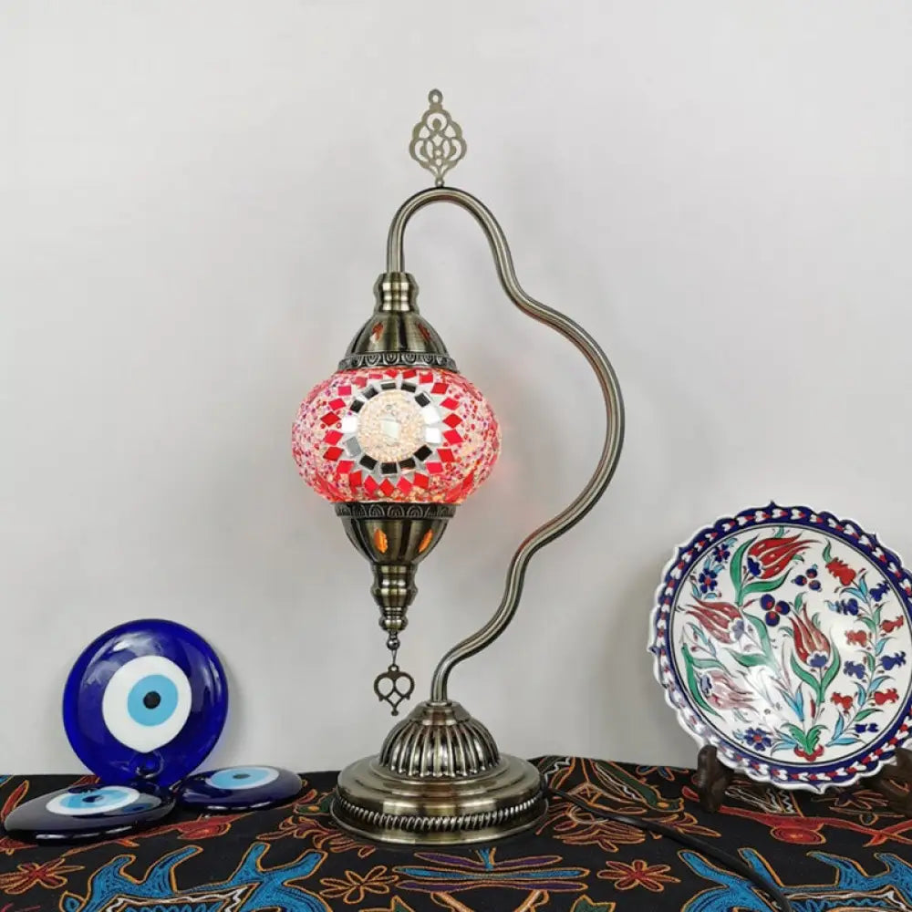 Lámpara de noche Art Déco de vidrieras - Brazo curvo, 1 bombilla, para mesita de noche (Rojo/Amarillo/Naranja)