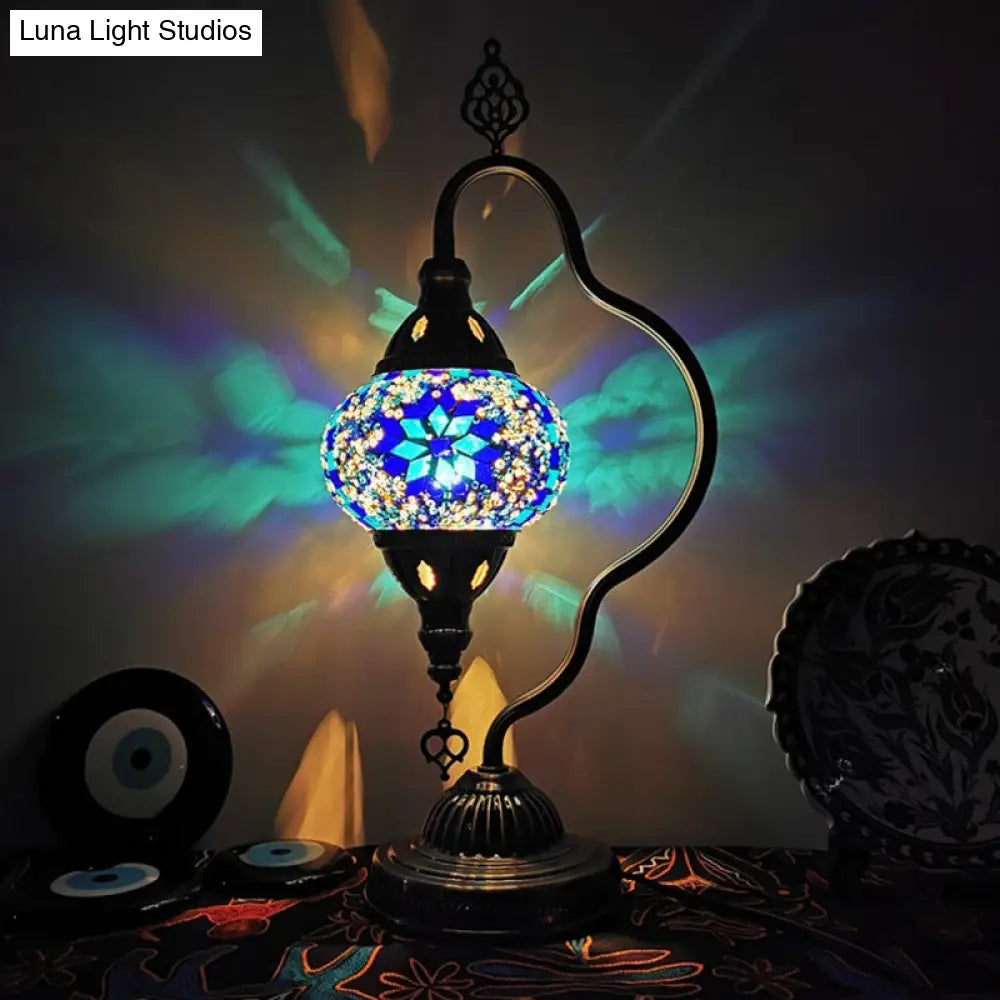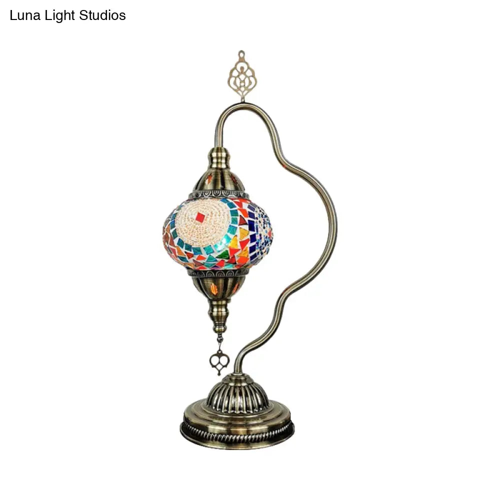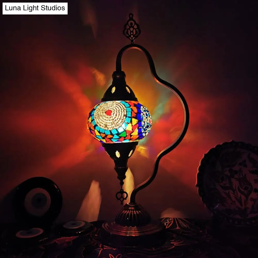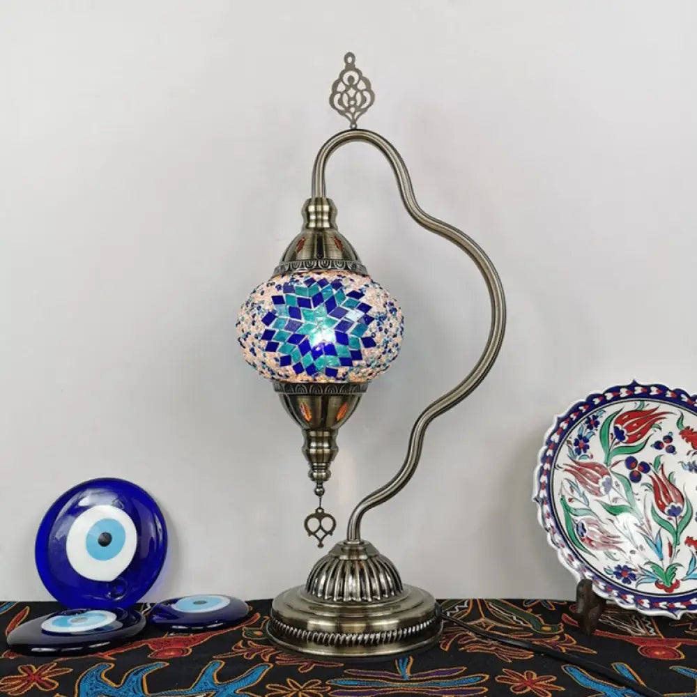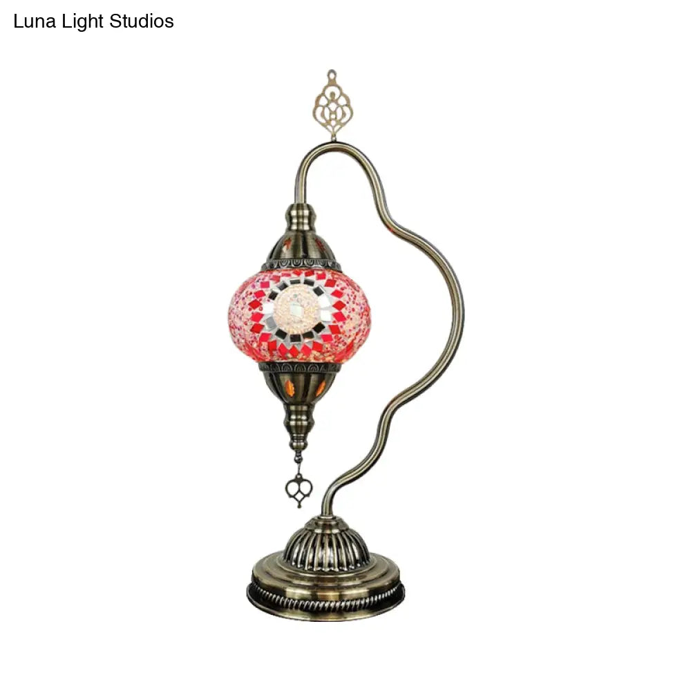 Lámpara de noche Art Déco de vidrieras - Brazo curvo, 1 bombilla, para mesita de noche (Rojo/Amarillo/Naranja)