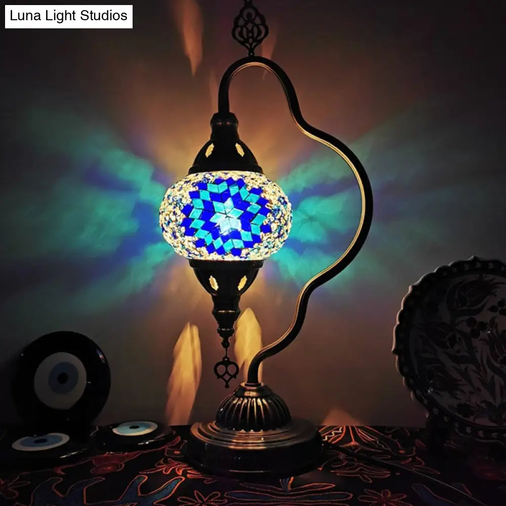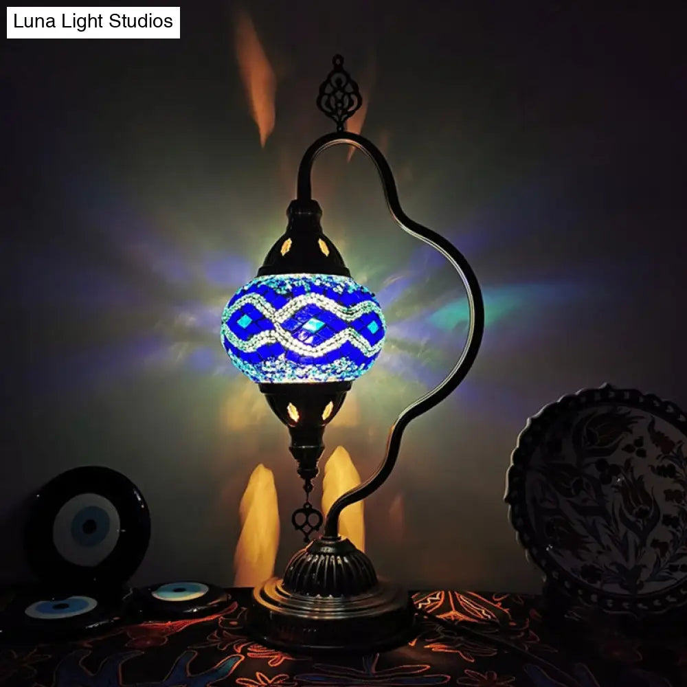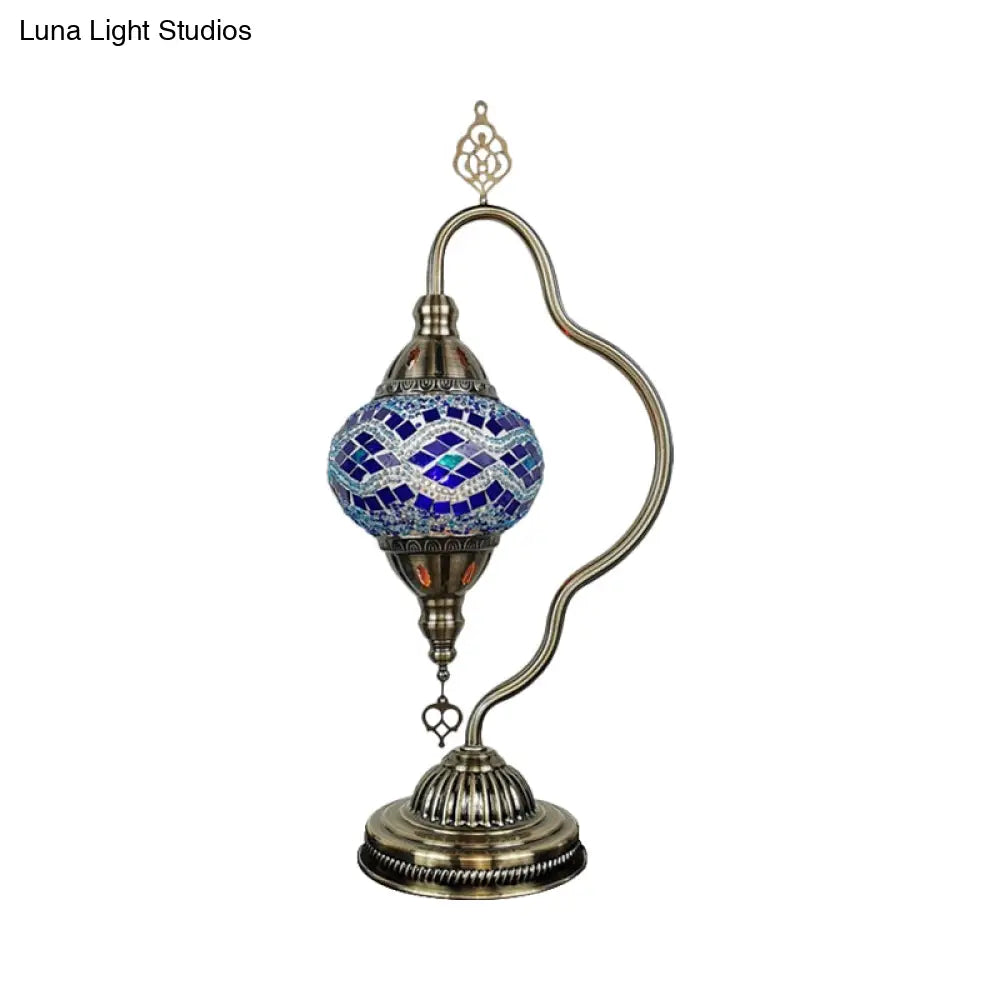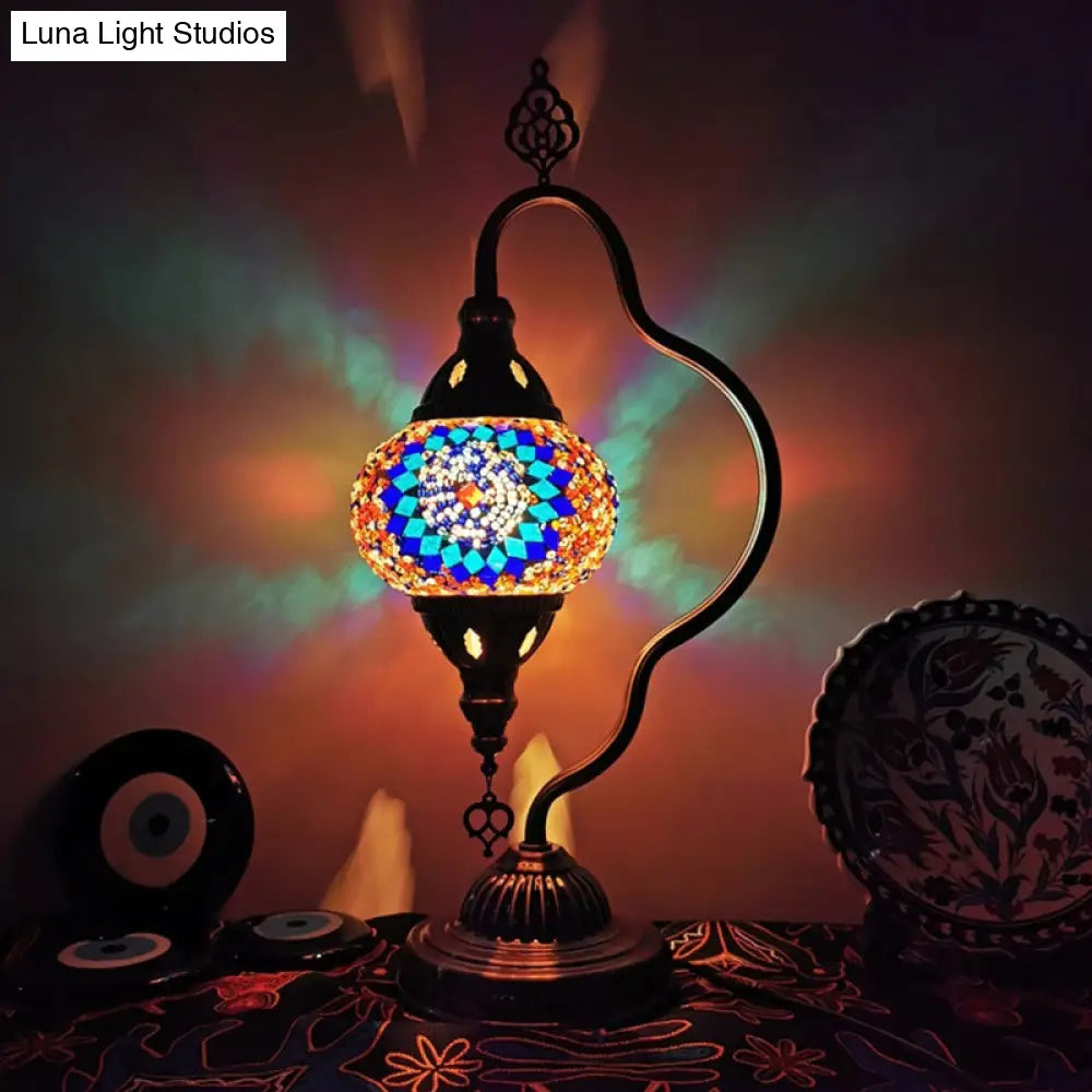 Lámpara de noche Art Déco de vidrieras - Brazo curvo, 1 bombilla, para mesita de noche (Rojo/Amarillo/Naranja)