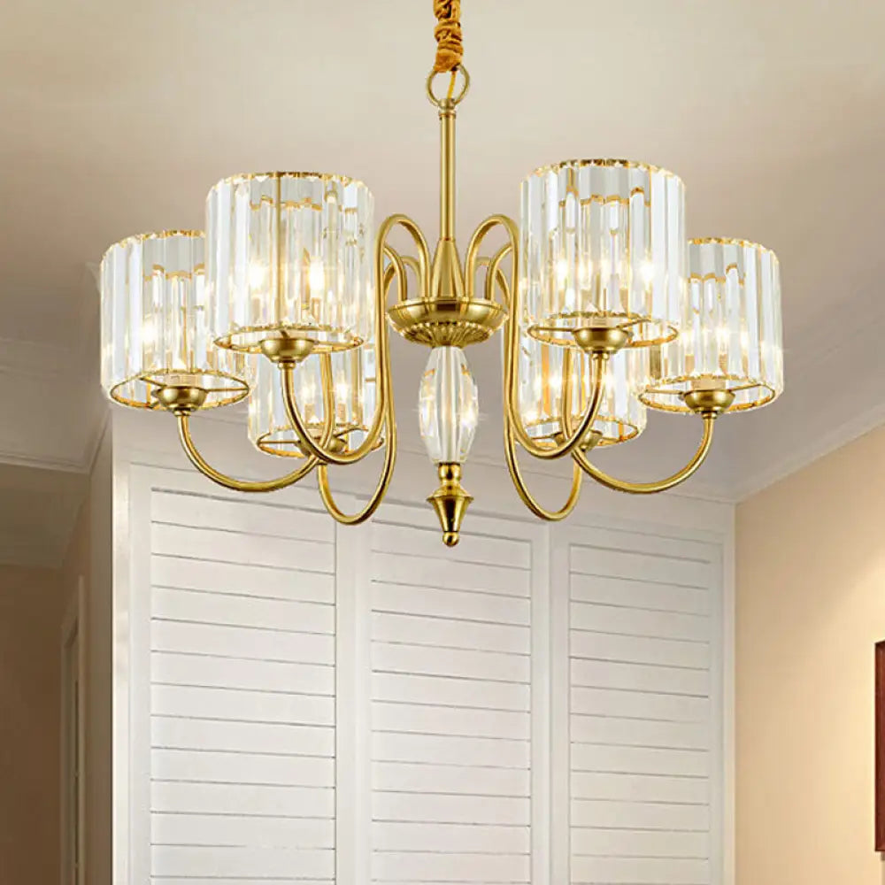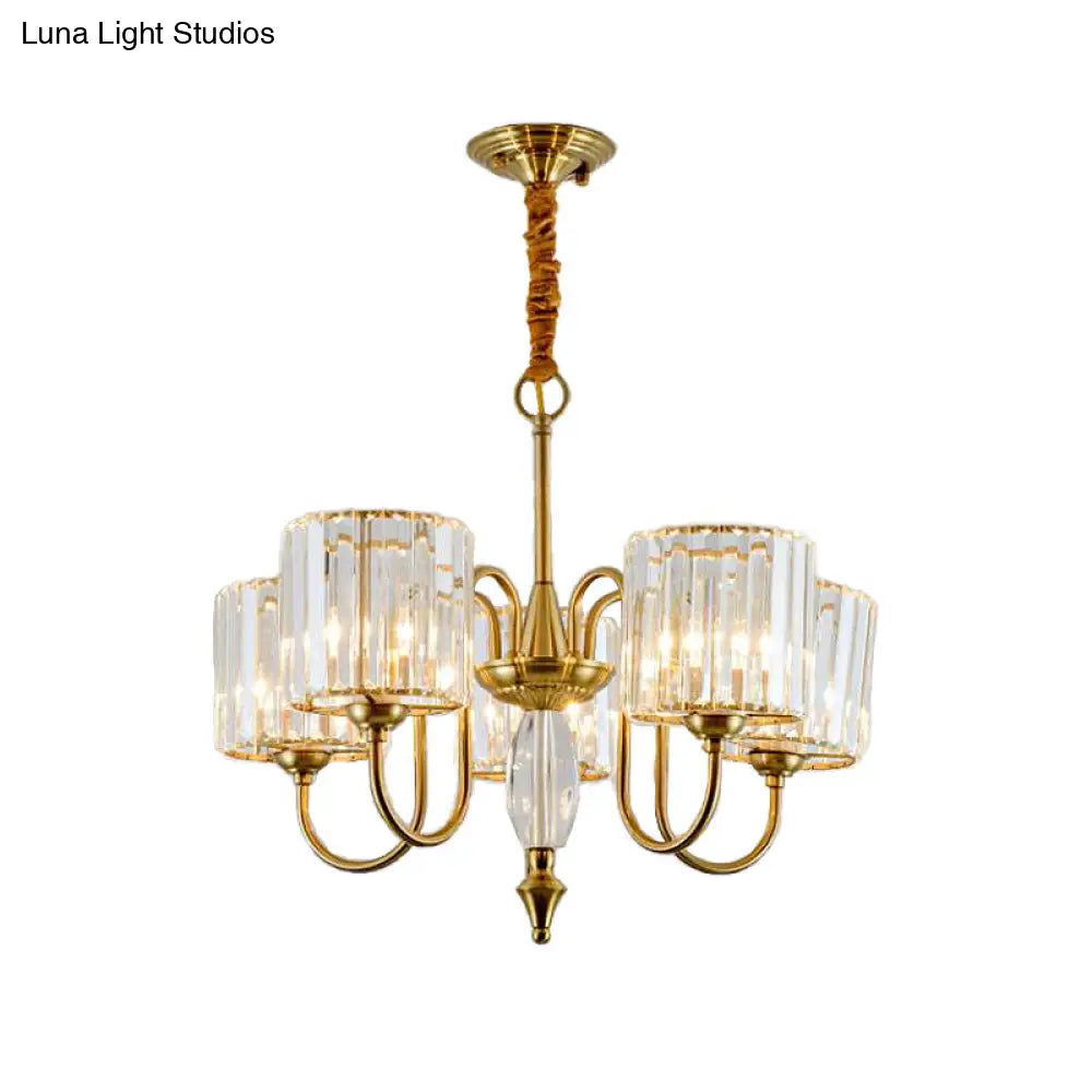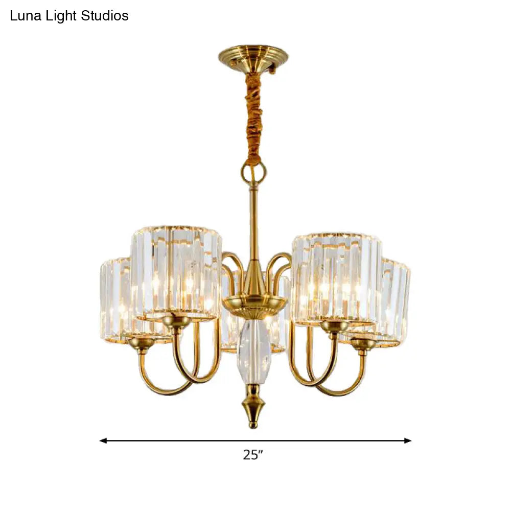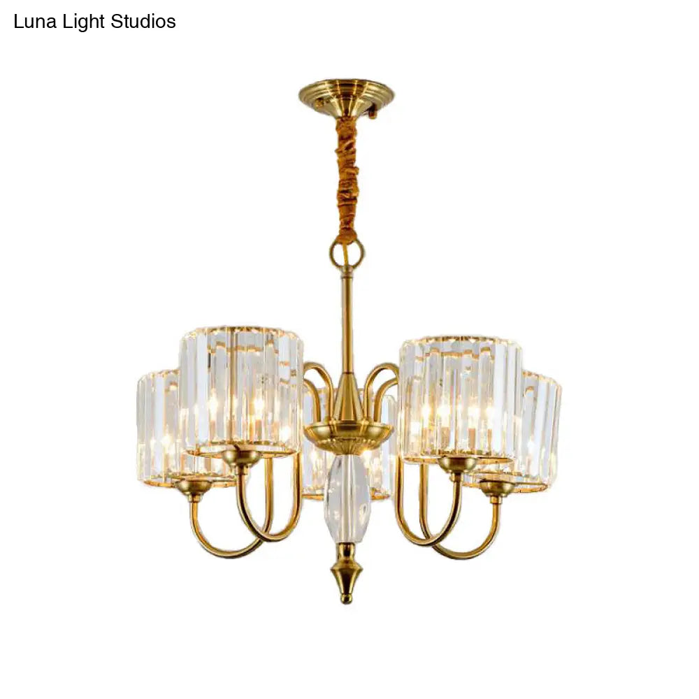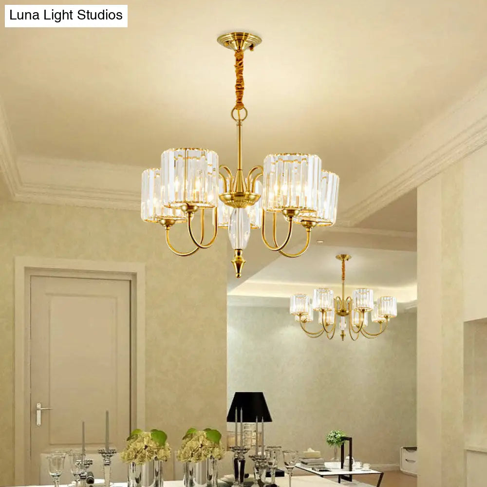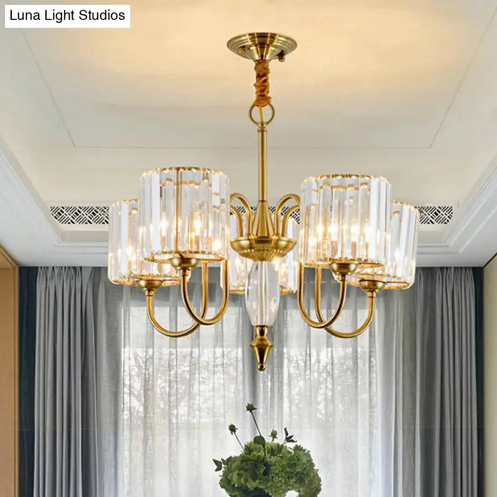 Lámpara de techo cilíndrica contemporánea de latón con facetas de cristal - Lámpara colgante de 3/5/6 cabezales