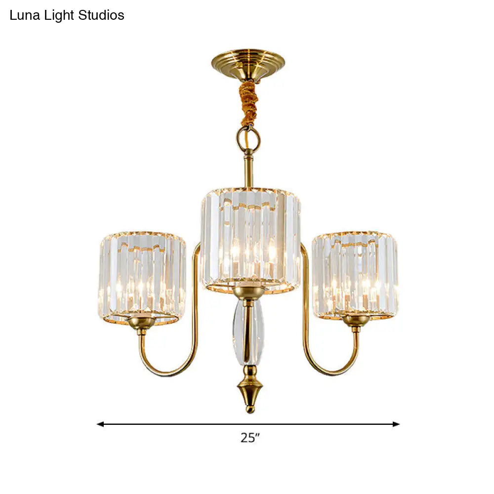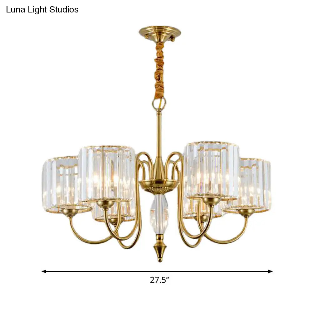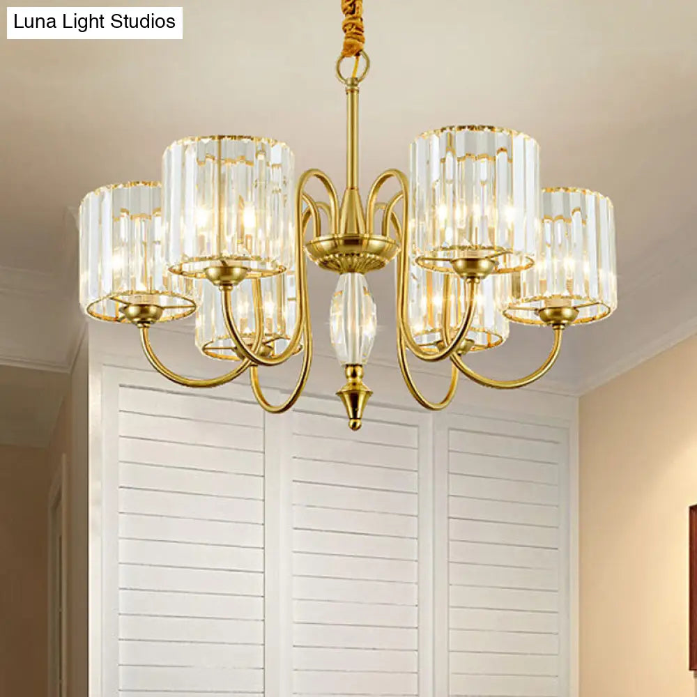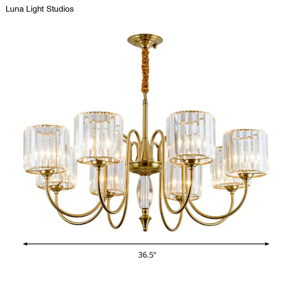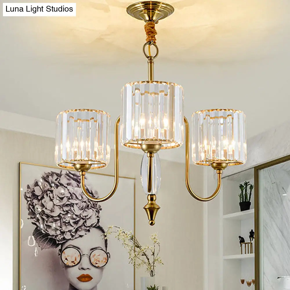 Lámpara de techo cilíndrica contemporánea de latón con facetas de cristal - Lámpara colgante de 3/5/6 cabezales