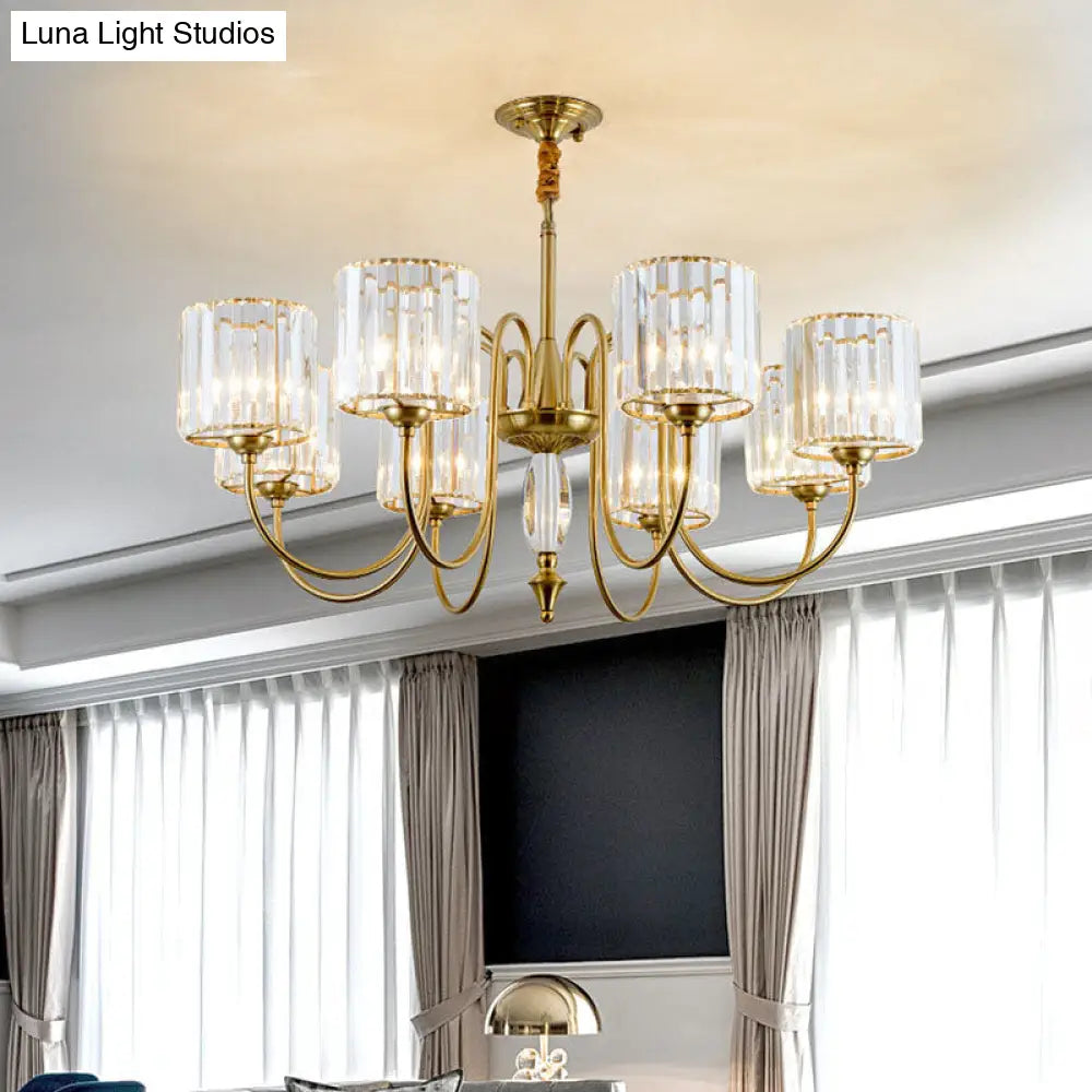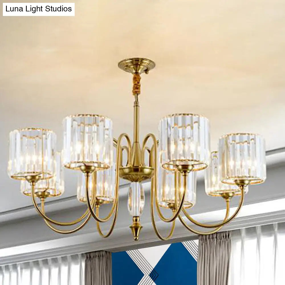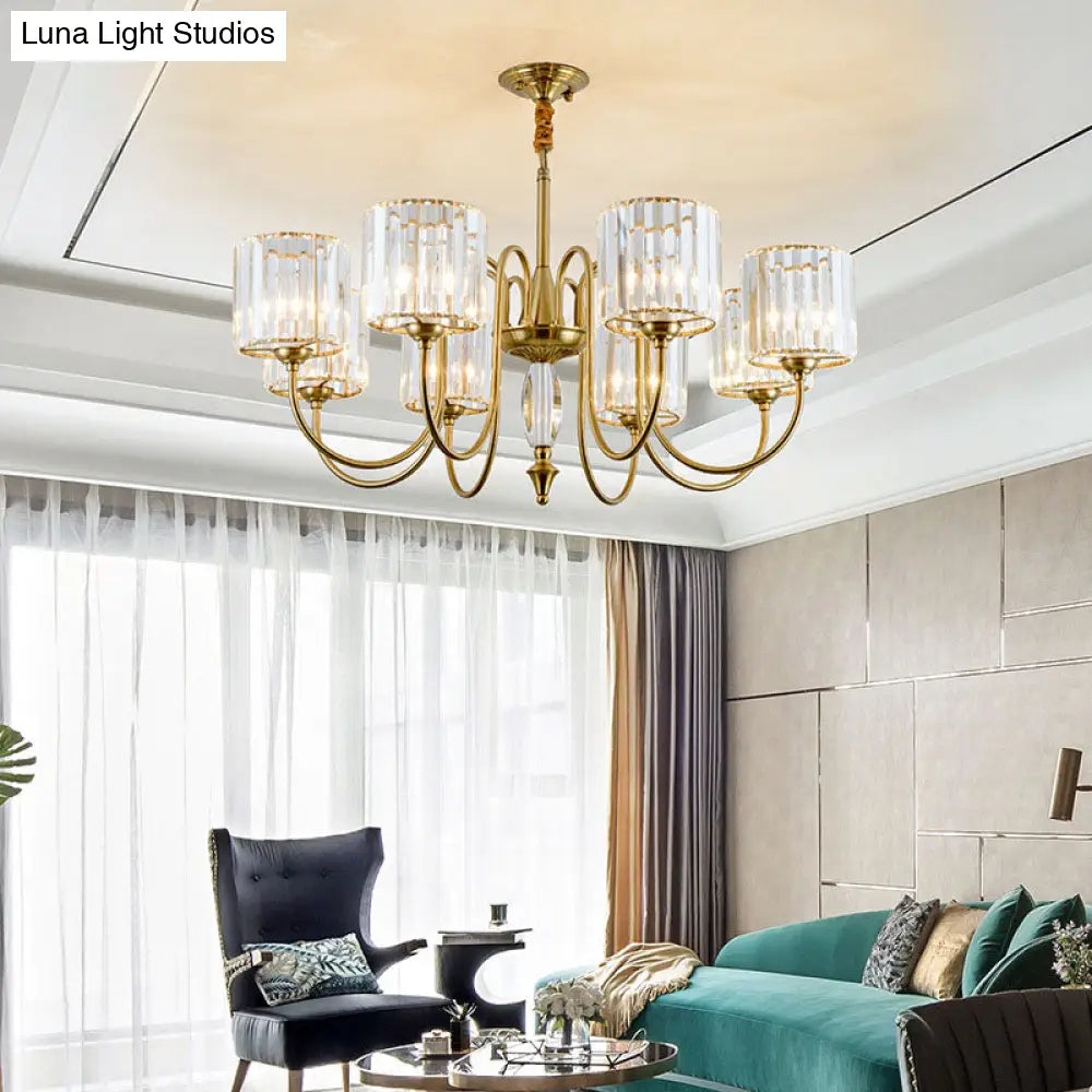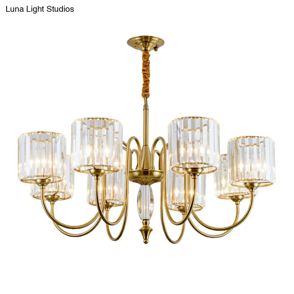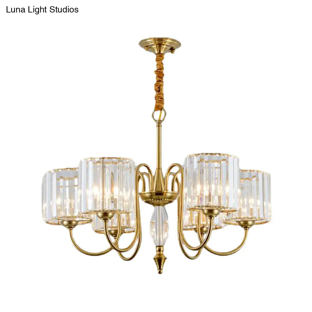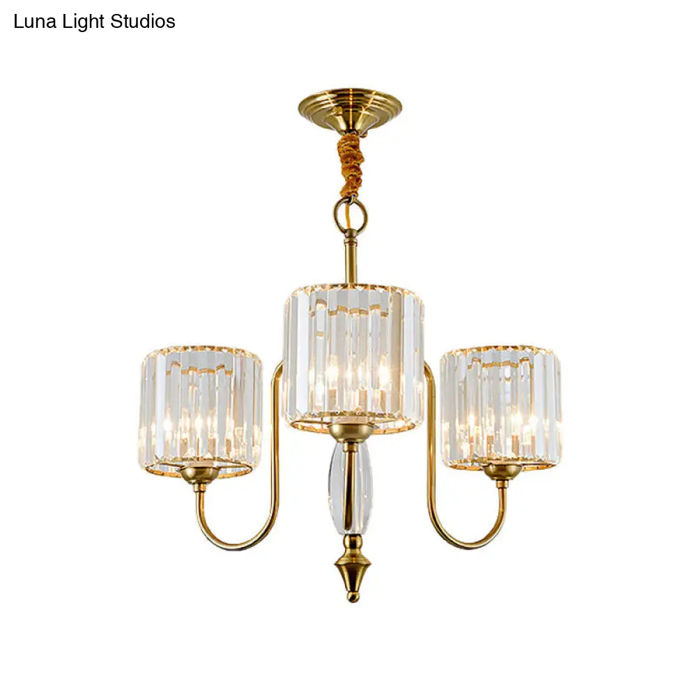 Lámpara de techo cilíndrica contemporánea de latón con facetas de cristal - Lámpara colgante de 3/5/6 cabezales