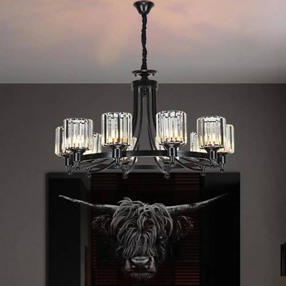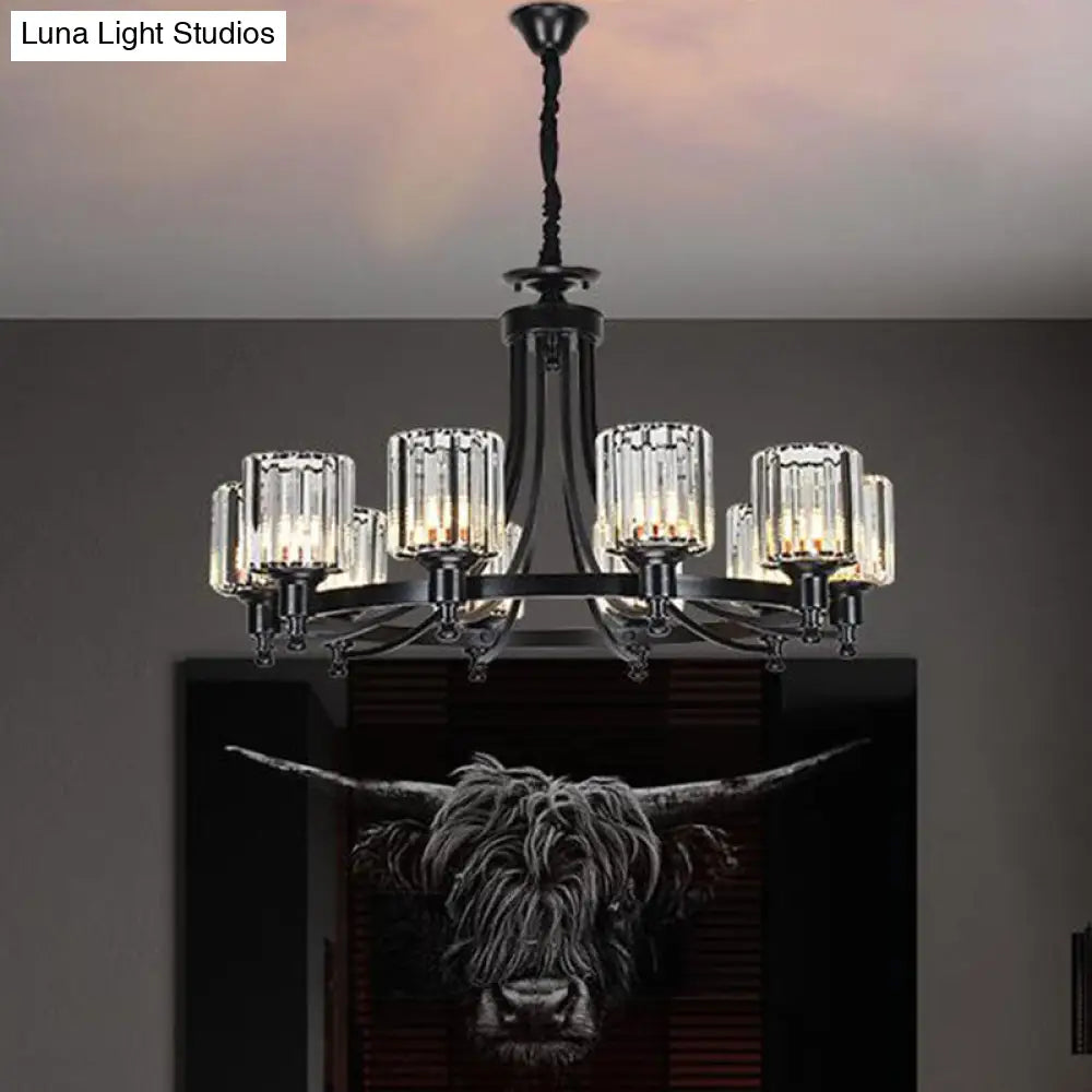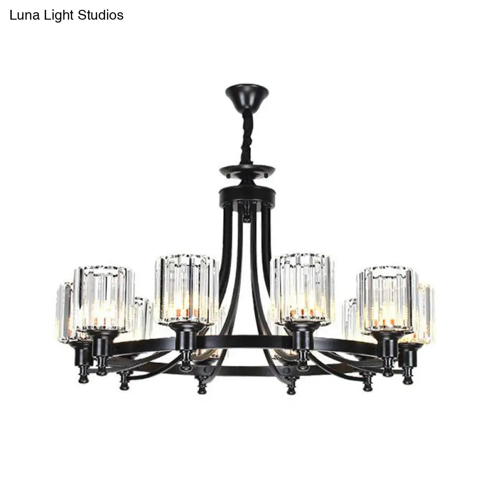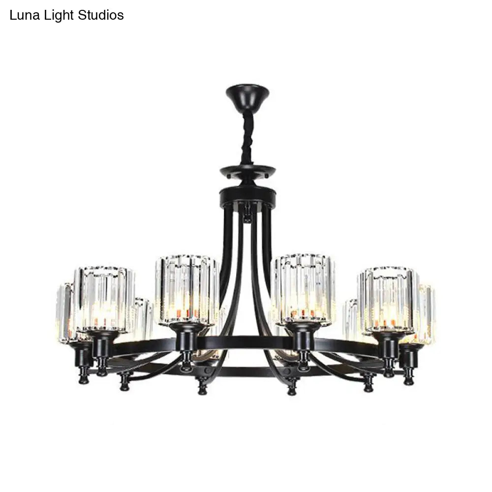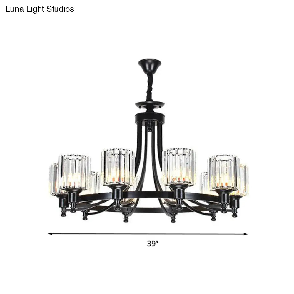 Lámpara de techo colgante posmoderna de 10 brazos con varilla de cristal cilíndrica – Negro/Latón
