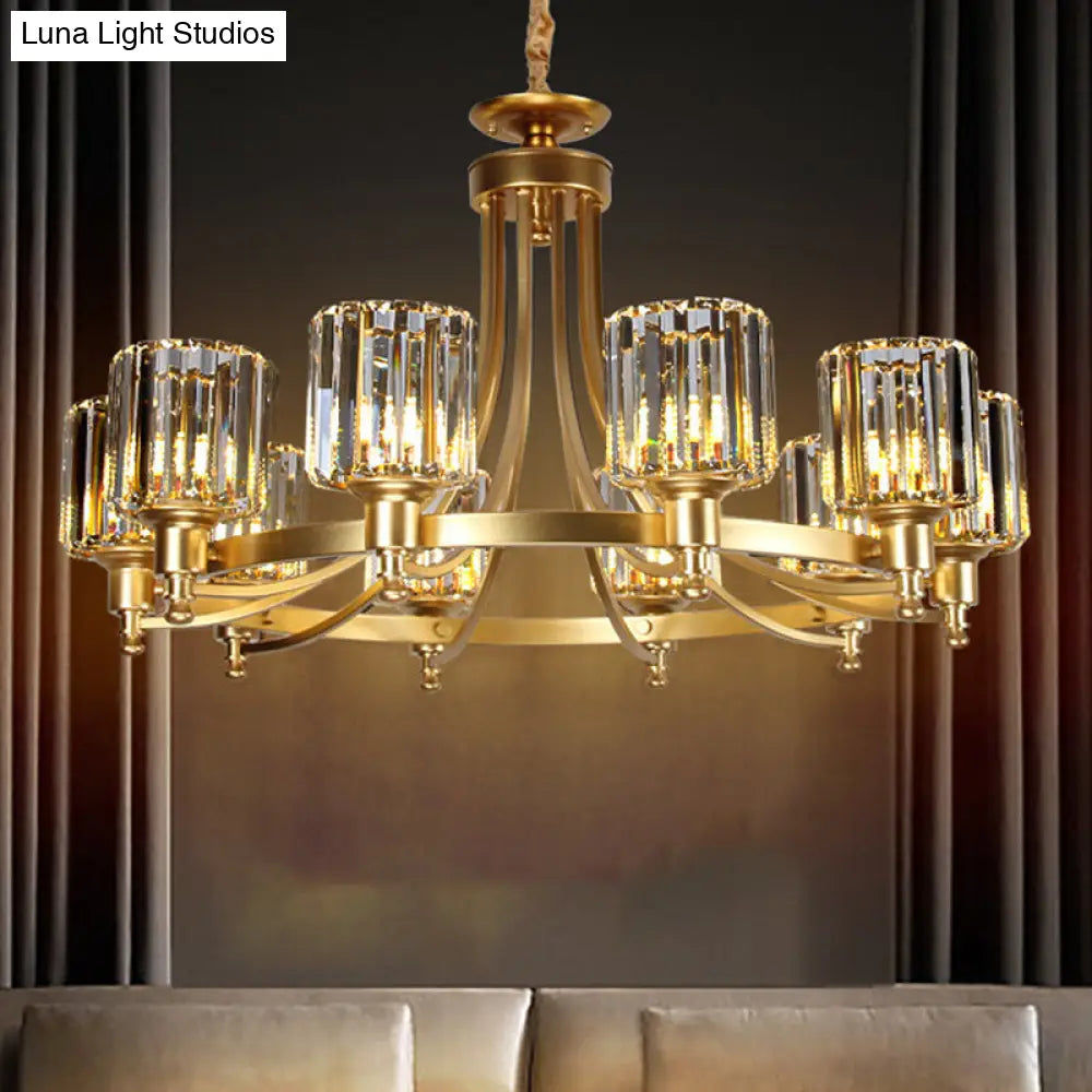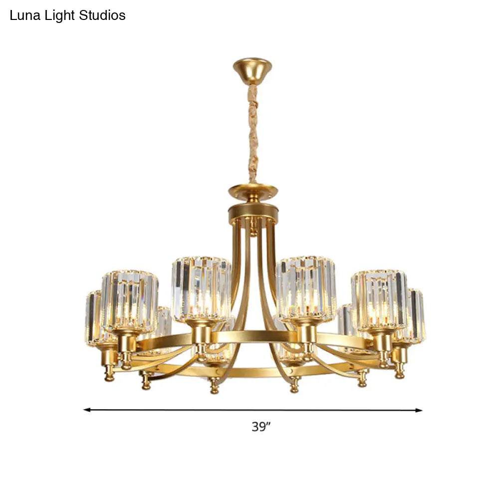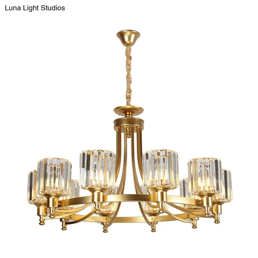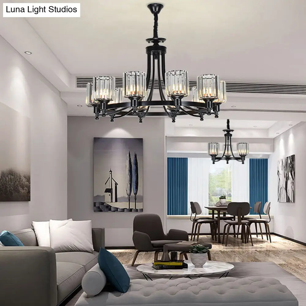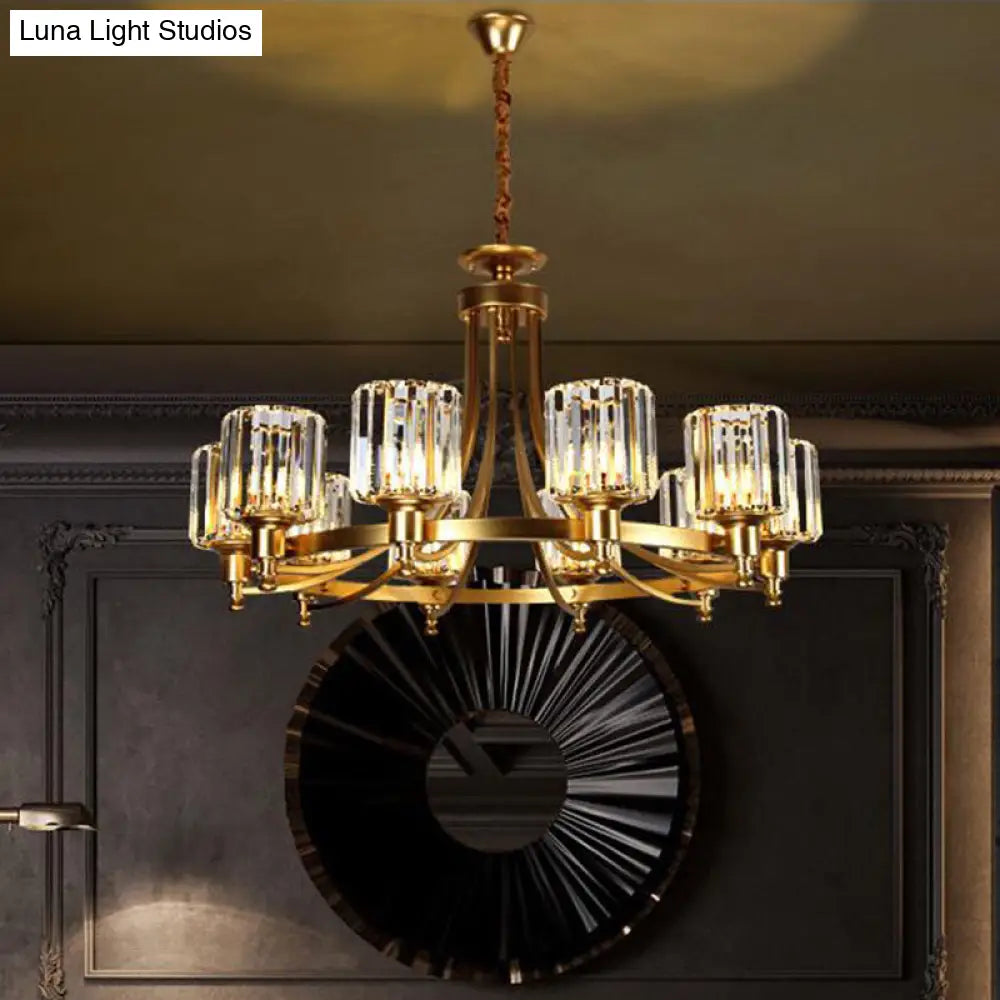 Lámpara de techo colgante posmoderna de 10 brazos con varilla de cristal cilíndrica – Negro/Latón