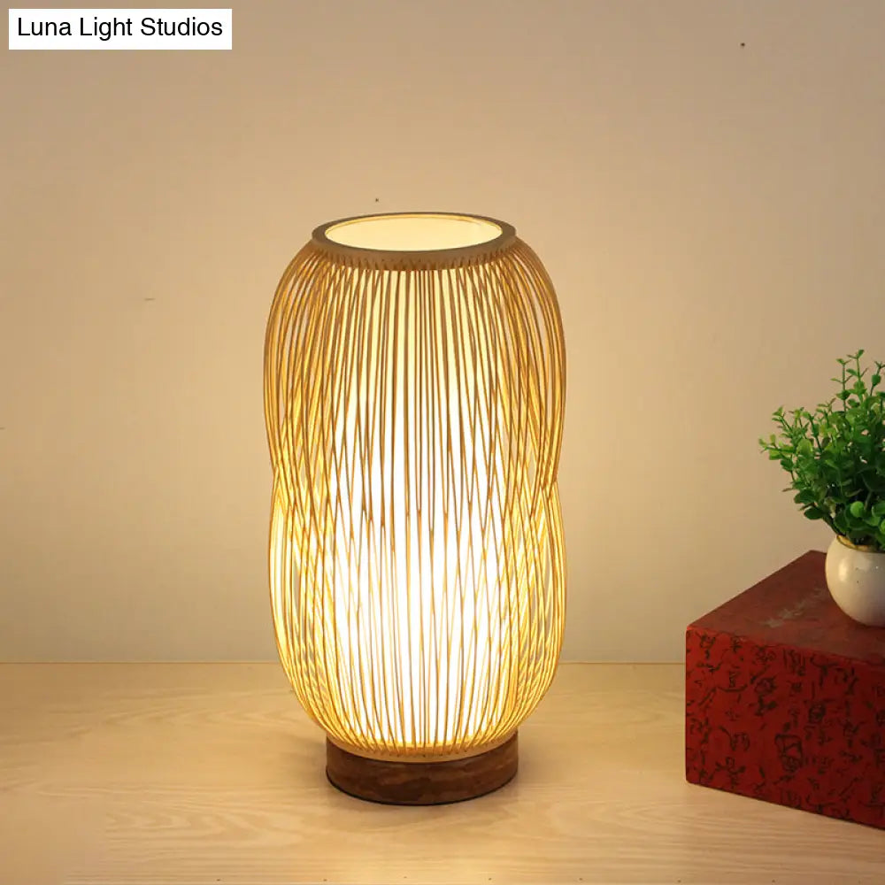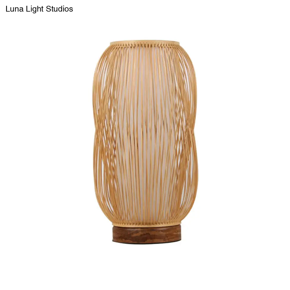 Lámpara de escritorio cilíndrica de bambú - Base de madera, 1 bombilla