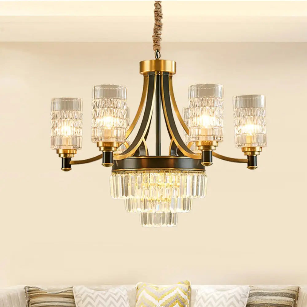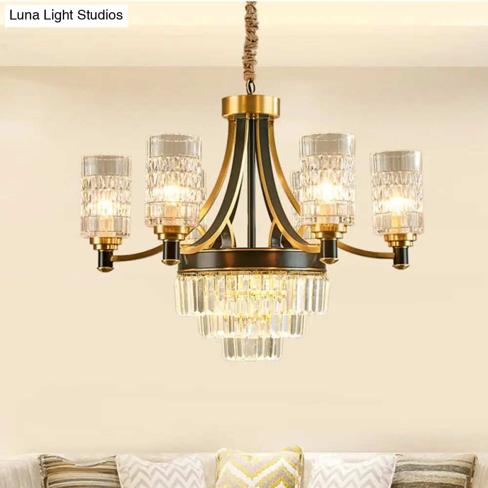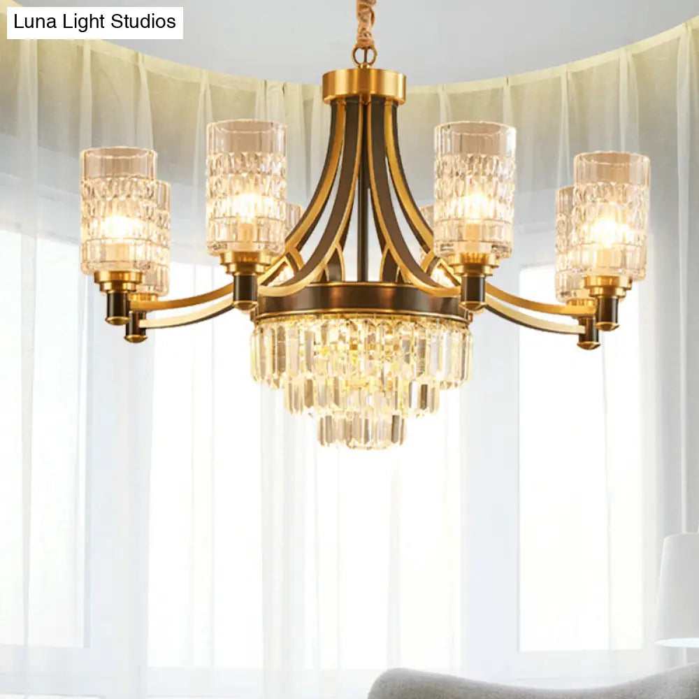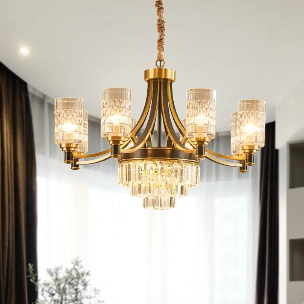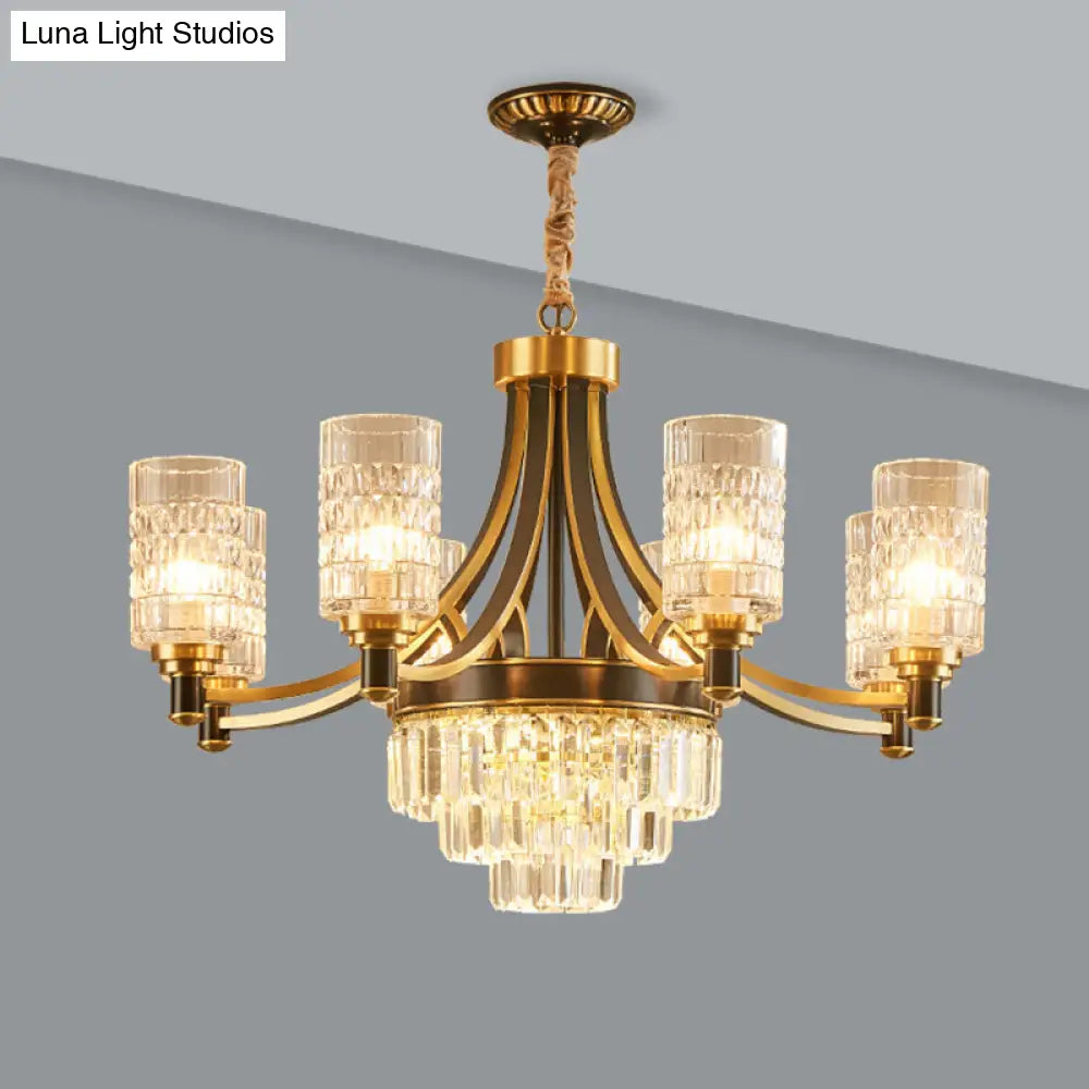 Lámpara de araña de cristal texturizado dorado con forma cilíndrica para comedor - Estilo posmoderno, 6/8 cabezales