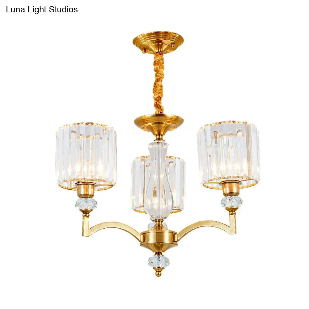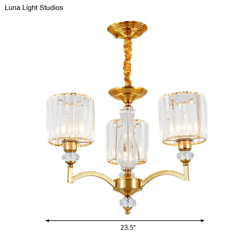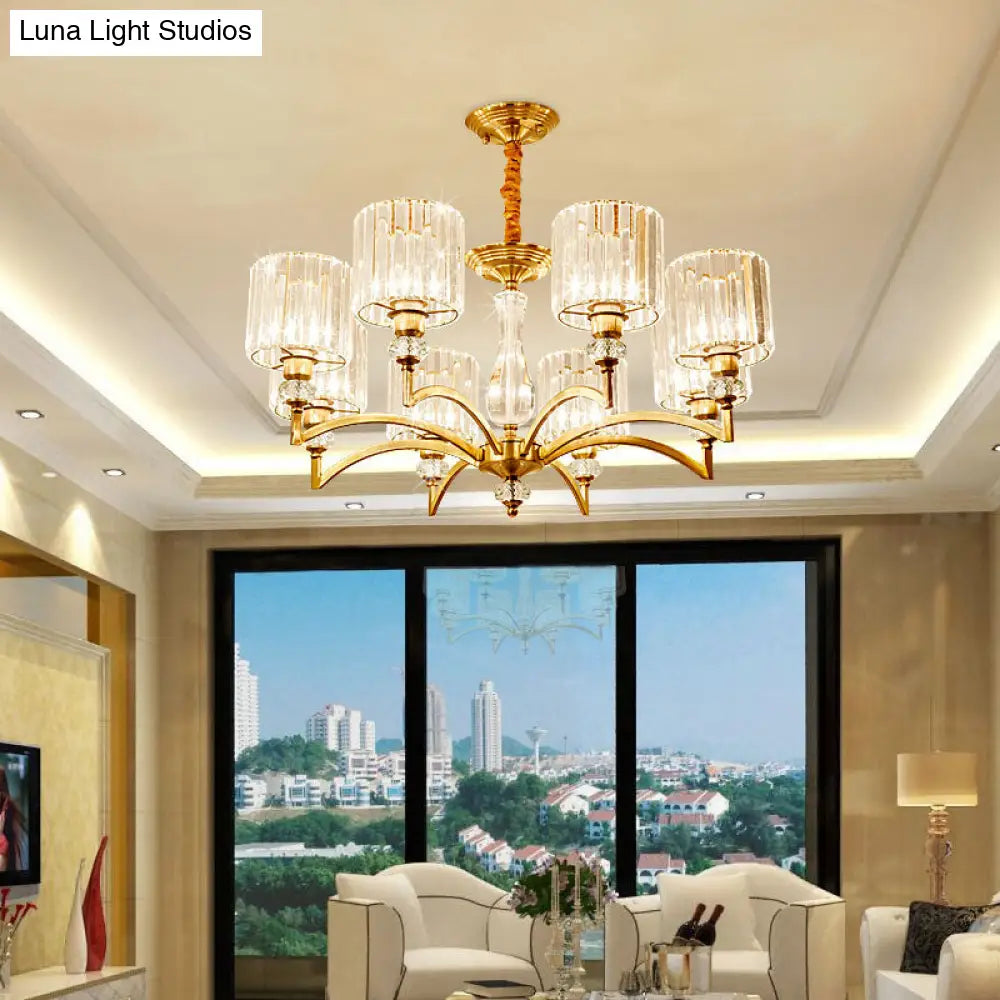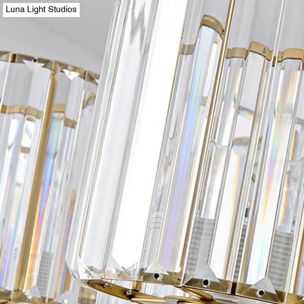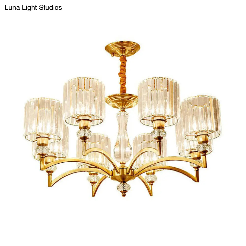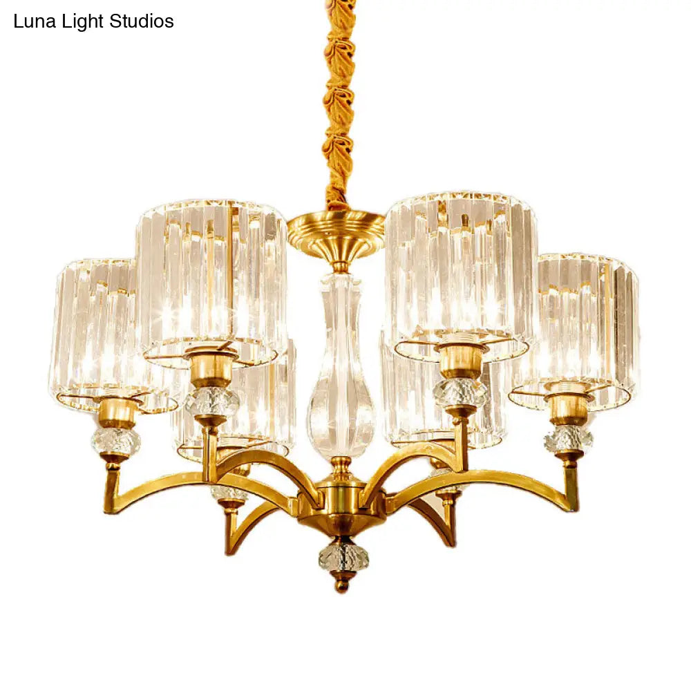 Lámpara de techo colgante de latón contemporánea con forma de cilindro de cristal facetado y 3/6/8 bombillas - 23,5"/27"/33,5" de ancho