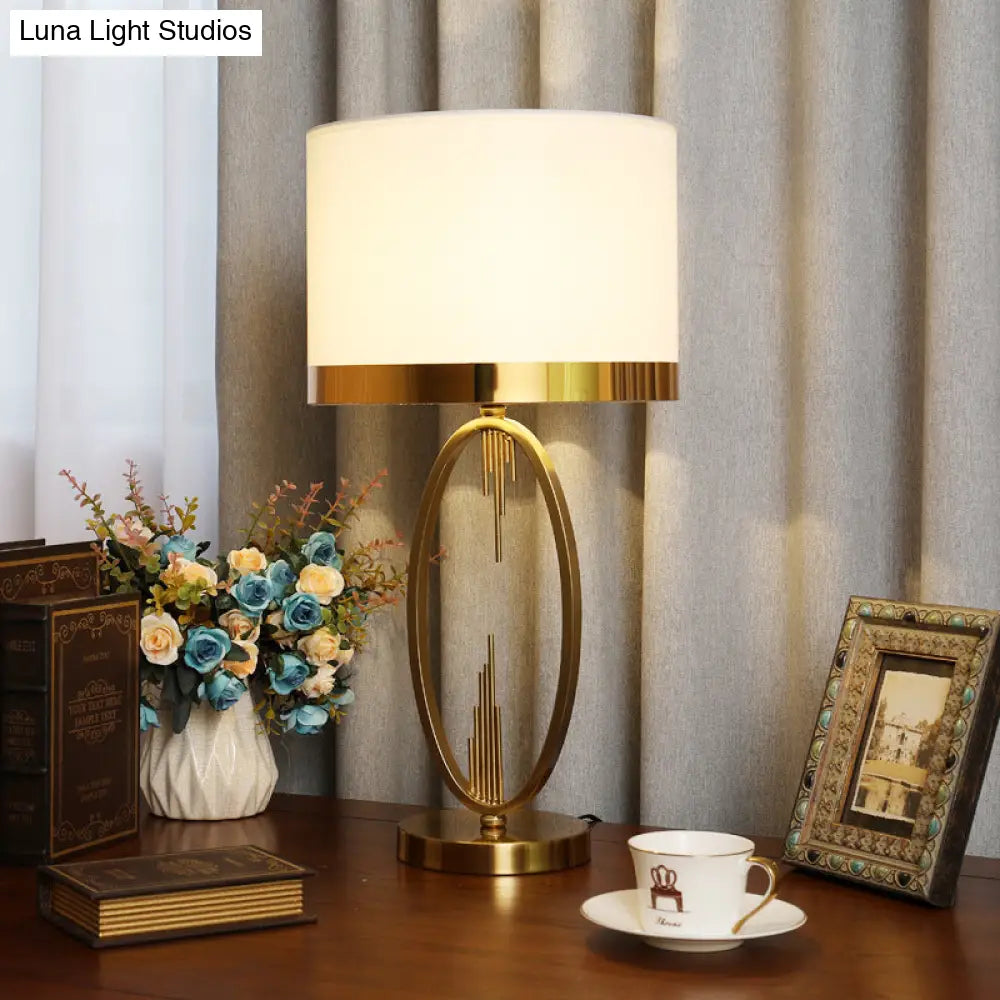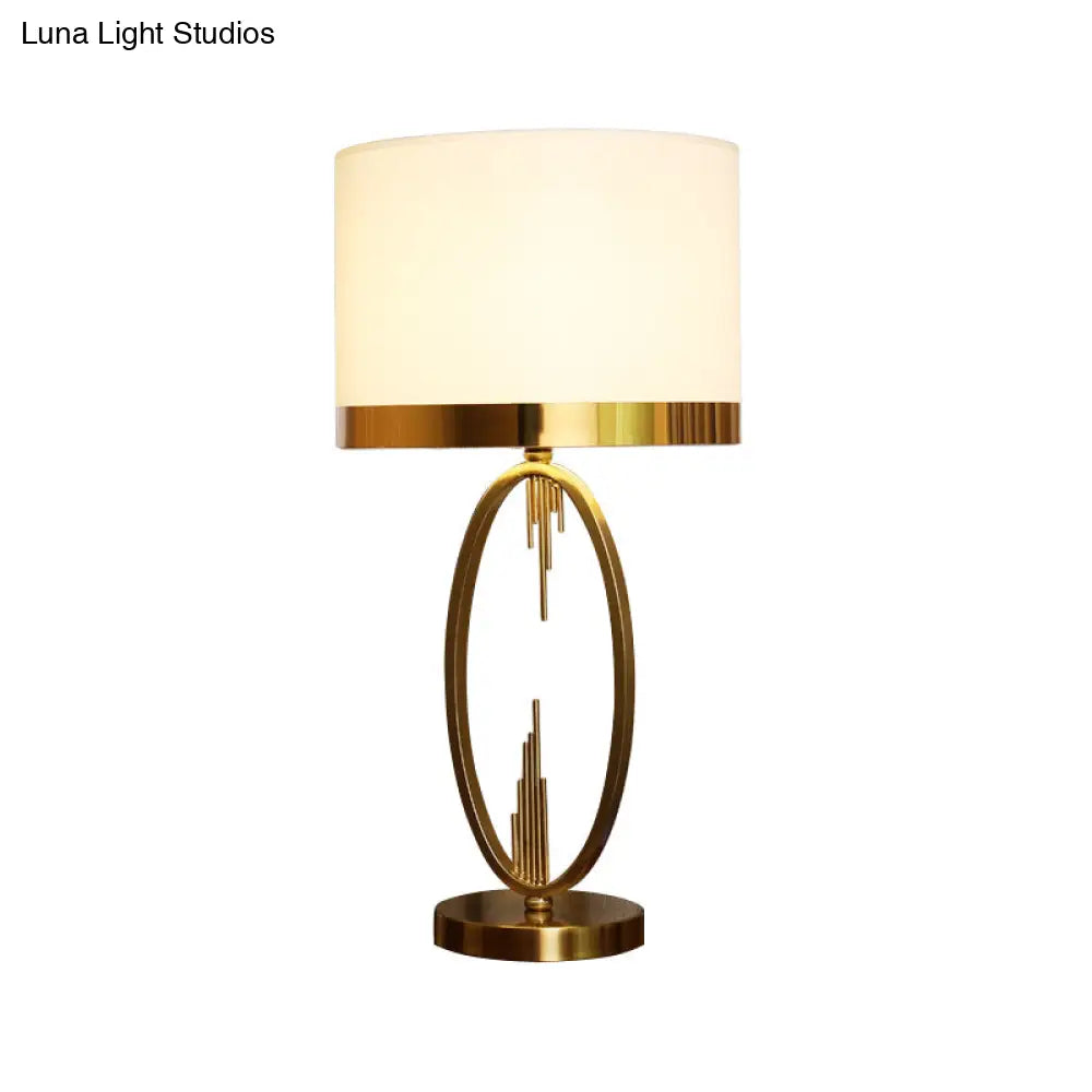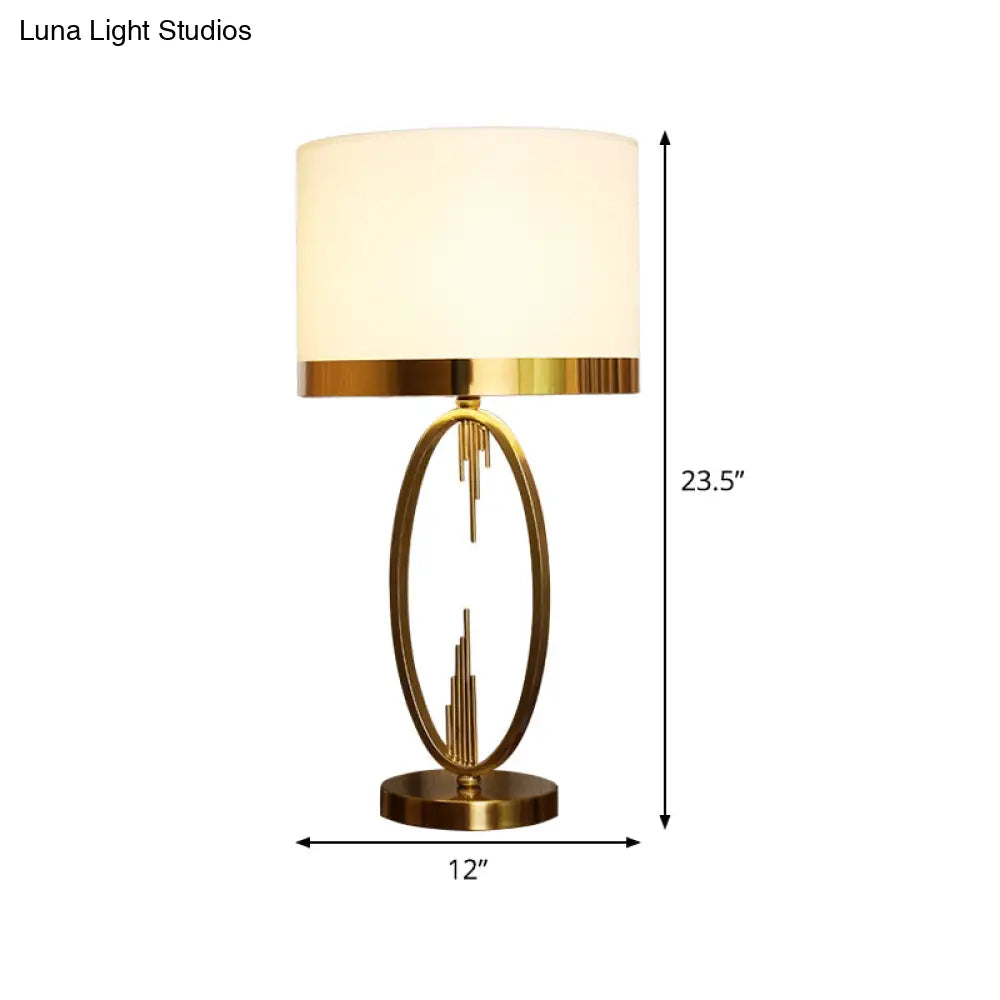 Lámpara de mesa cilíndrica contemporánea de tela con un cabezal - Lámpara de mesilla de noche blanca (12"/16" de ancho)