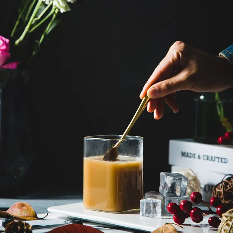 Vaso cuadrado de vidrio transparente DecorBites™ de 370 ml para té, leche o jugo - Vaso resistente a la temperatura