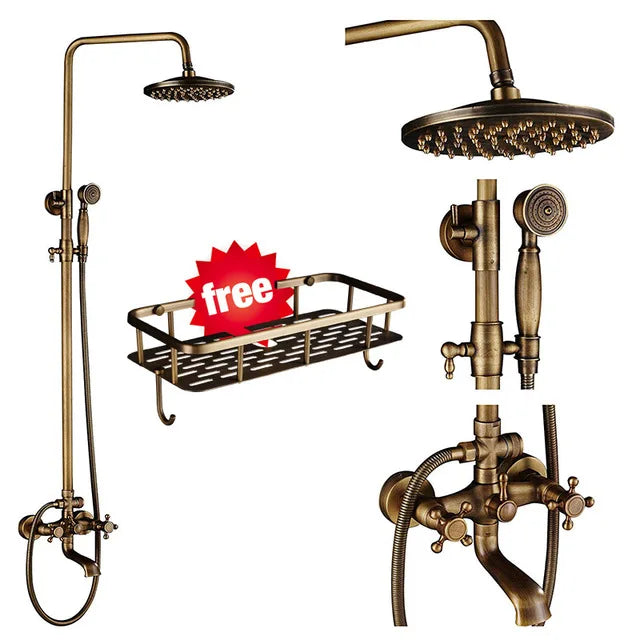 Presentamos el juego de grifería para ducha de latón antiguo, una impresionante adición a su baño que irradia lujo y sofisticación. Este exquisito juego de grifería cuenta con un rociador tipo lluvia de 8 pulgadas y un rociador giratorio, brindándole una experiencia de ducha verdaderamente placentera.