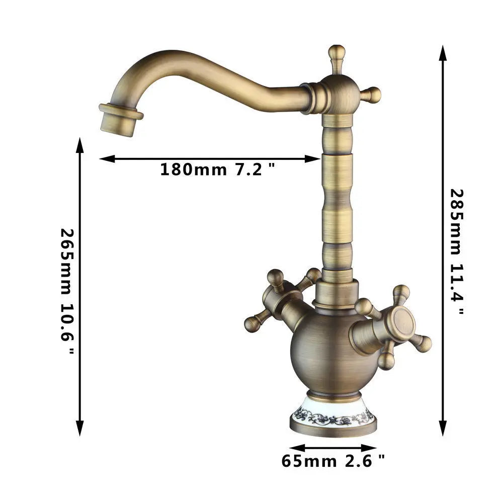 Fabricado en latón macizo de alta calidad, este grifo de baño cuenta con una construcción robusta y duradera. Su acabado en latón envejecido le aporta un toque vintage, mientras que el caño giratorio permite una fácil maniobrabilidad y un control preciso del caudal. El diseño de monomando, con pomo de cerámica, añade un toque moderno a esta pieza clásica.