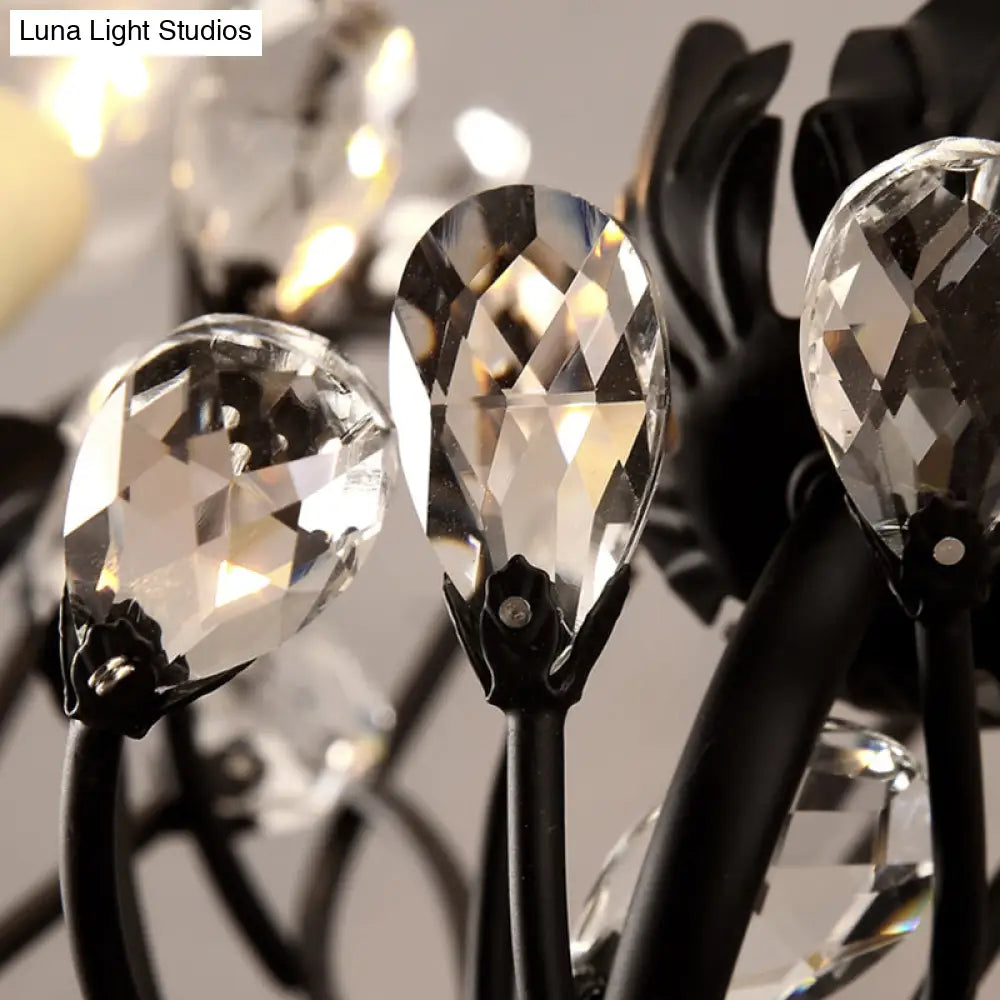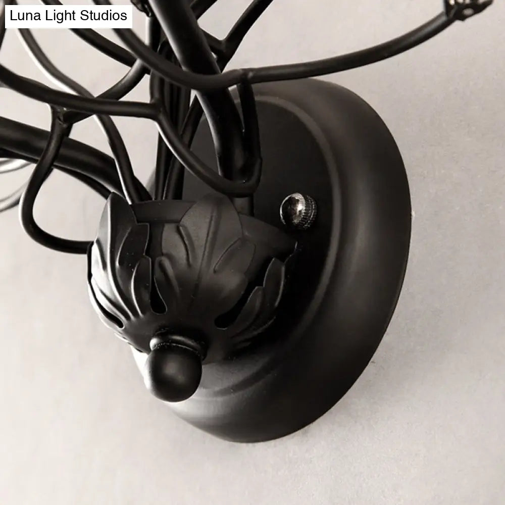 Aplique de pared DecorBites™ de metal antiguo con detalles de cristal - Elegante diseño floral negro, 2 luces - Perfecto para la sala de estar