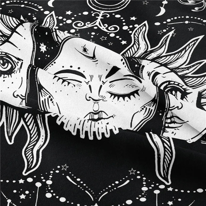 Presentamos el tapiz de pared Decorbites con carta astral, rueda del tarot, sol, luna, árbol y seta, una pieza única y encantadora para cualquier espacio. Confeccionado en poliéster 100% de alta calidad, este tapiz irradia un aire de misterio y encanto.