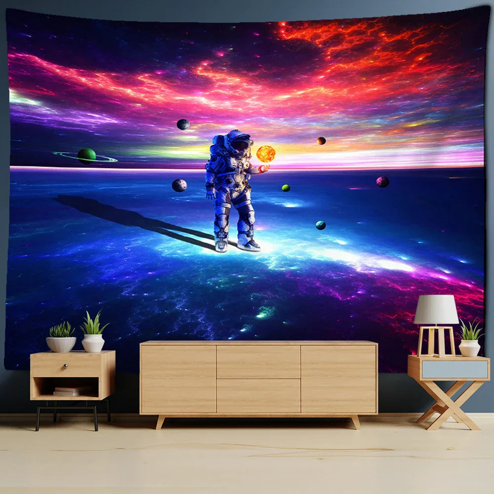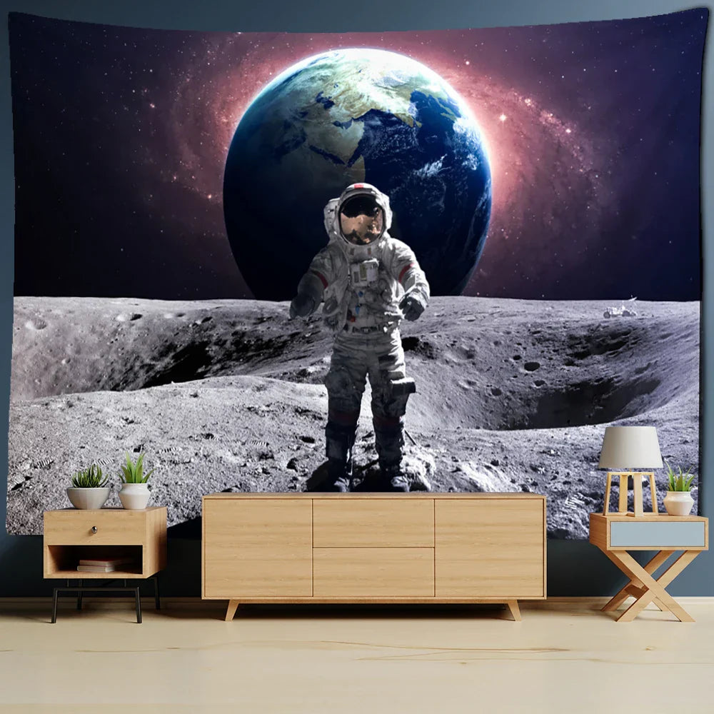 Tapiz de pared DecorBites™ Astronauta Luna - Decoración boho hippie para sala de estar