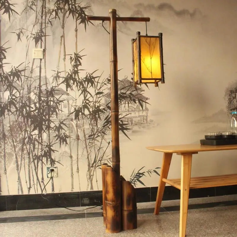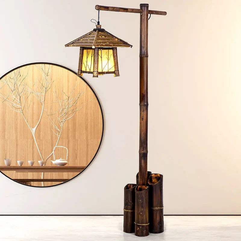 Lámpara de pie DecorBites™ de bambú tejido | Diseño retro para sala de estar y estudio estilo zen