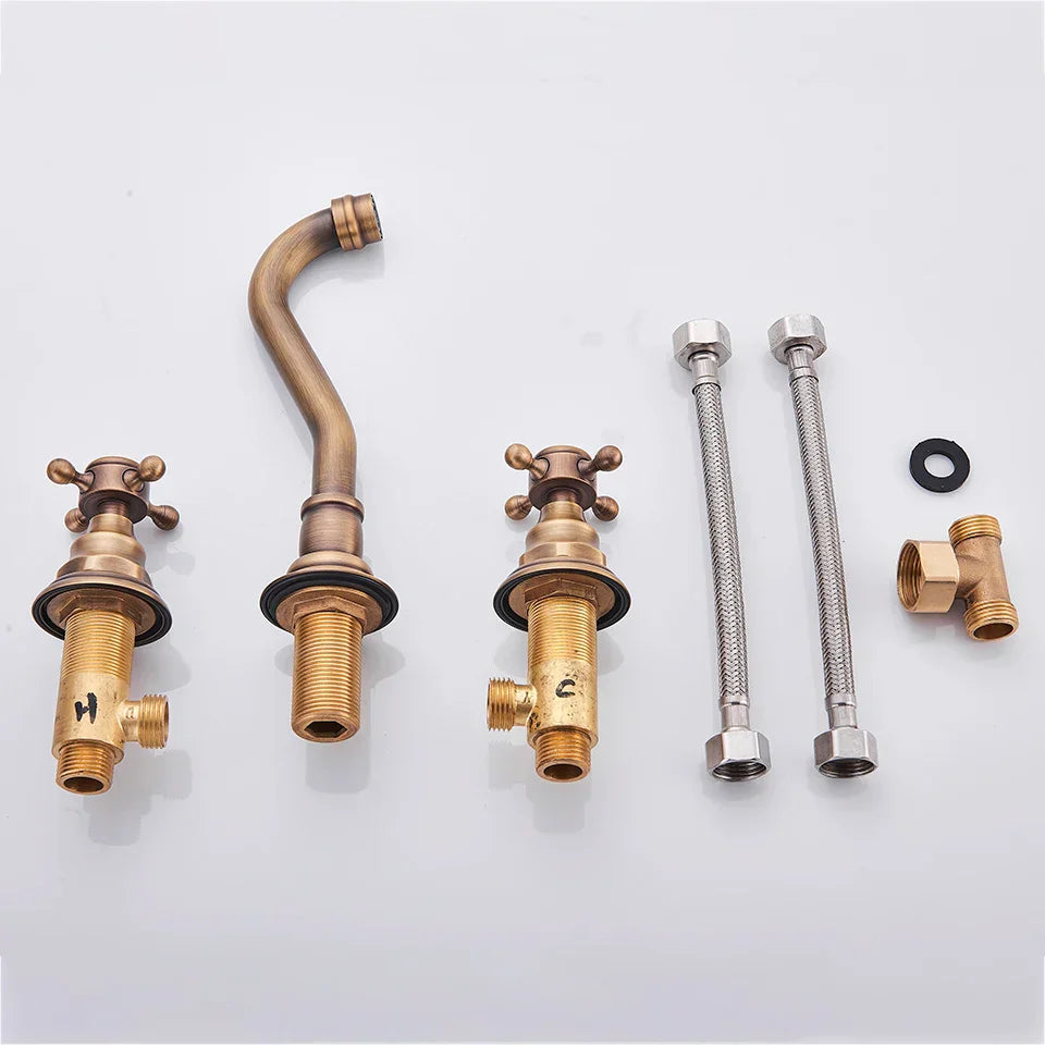 Con un diseño de doble manija y un cabezal de cerámica, este grifo de lavabo ofrece un funcionamiento suave y duradero. Su acabado en latón antiguo aporta un toque de sofisticación a la decoración de su baño, integrándose a la perfección con diversos estilos.
