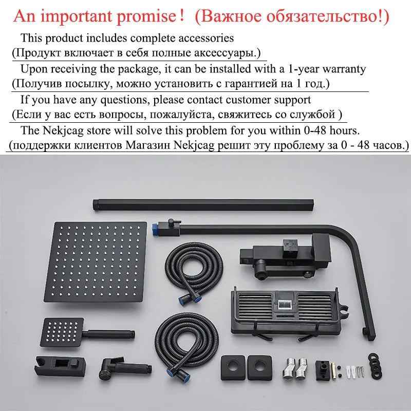 El juego de grifería para ducha Decorbites de latón negro cuenta con las certificaciones CE y EAC, lo que garantiza su calidad y seguridad. Con un año de garantía, puede confiar en la fiabilidad de este juego de ducha. El cabezal de la grifería está disponible en tamaños de 8, 10 o 12 pulgadas, para que disfrute de una ducha tipo lluvia como prefiera.