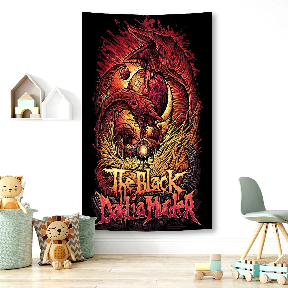 Transforma cualquier espacio en un paraíso para los amantes del rock con este tapiz único que luce el icónico diseño de la banda de metal Black Dahlia Murder. Tanto si organizas una jam session como si simplemente quieres darle un toque rockero a tu decoración, este tapiz es la elección perfecta.