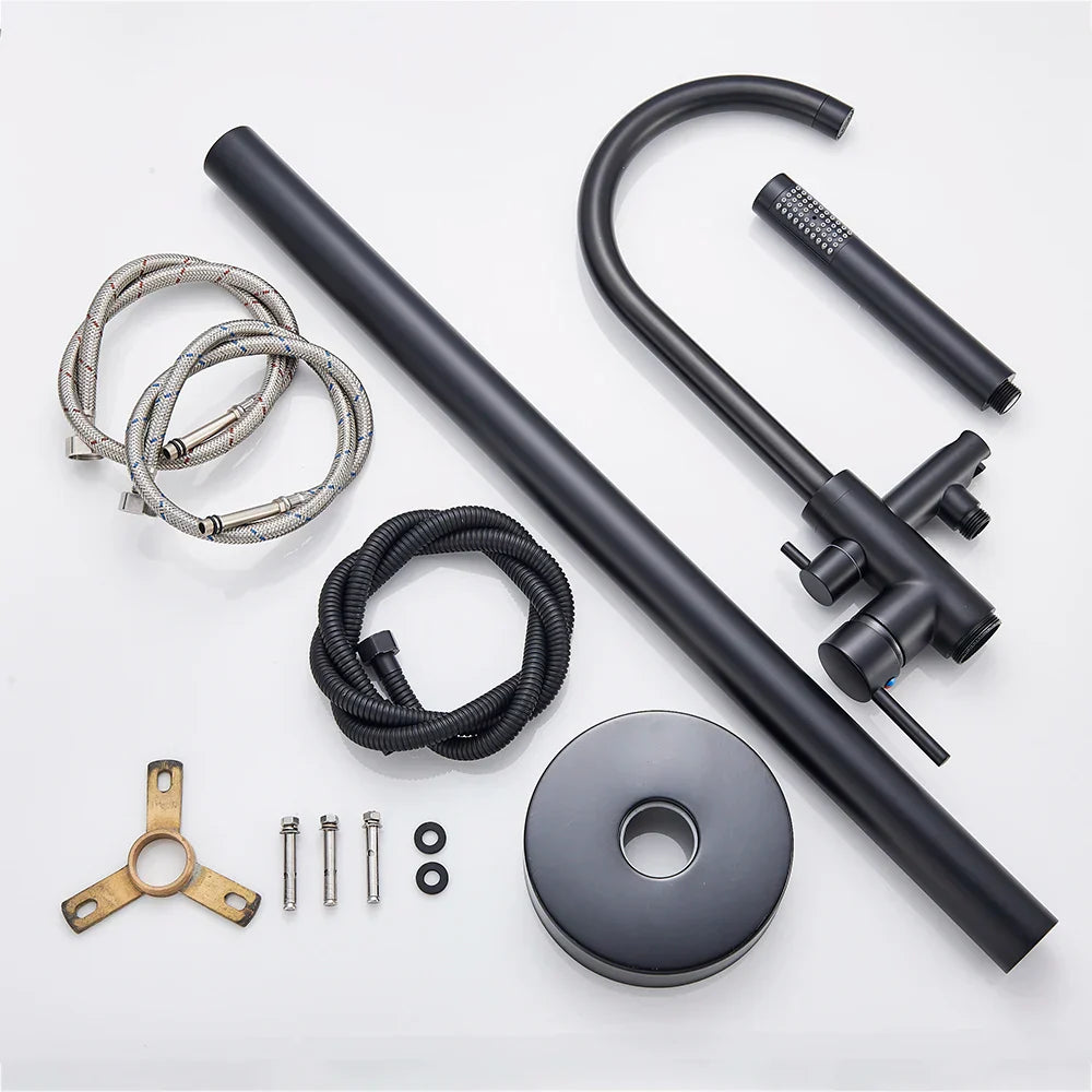Eleva tu experiencia de baño con el juego de grifería para bañera independiente Decorbites de doble manija en color negro. Este exquisito juego de grifería combina un diseño moderno con una funcionalidad excelente para brindarte lujo en tu baño.