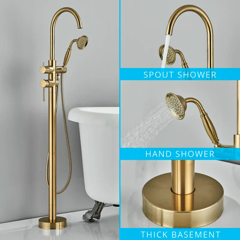 Este juego de grifería para bañera no solo es un complemento práctico para tu baño, sino también una pieza que refleja tu estilo y personalidad. Los detalles en oro, cromo o níquel cepillado le dan un toque de lujo, mientras que su instalación de pie añade un toque de elegancia a tu espacio.