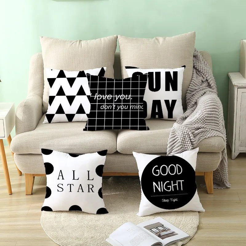 Diseñadas con calidad y estilo, estas fundas de almohada son ideales para venta al por mayor y dropshipping. Realza la estética de tu hogar con la funda de cojín Decorbites con estampado de letras geométricas negras y añade un toque de lujo a tu espacio. Eleva la decoración de tu hogar hoy mismo con estas elegantes y sofisticadas fundas de cojín.