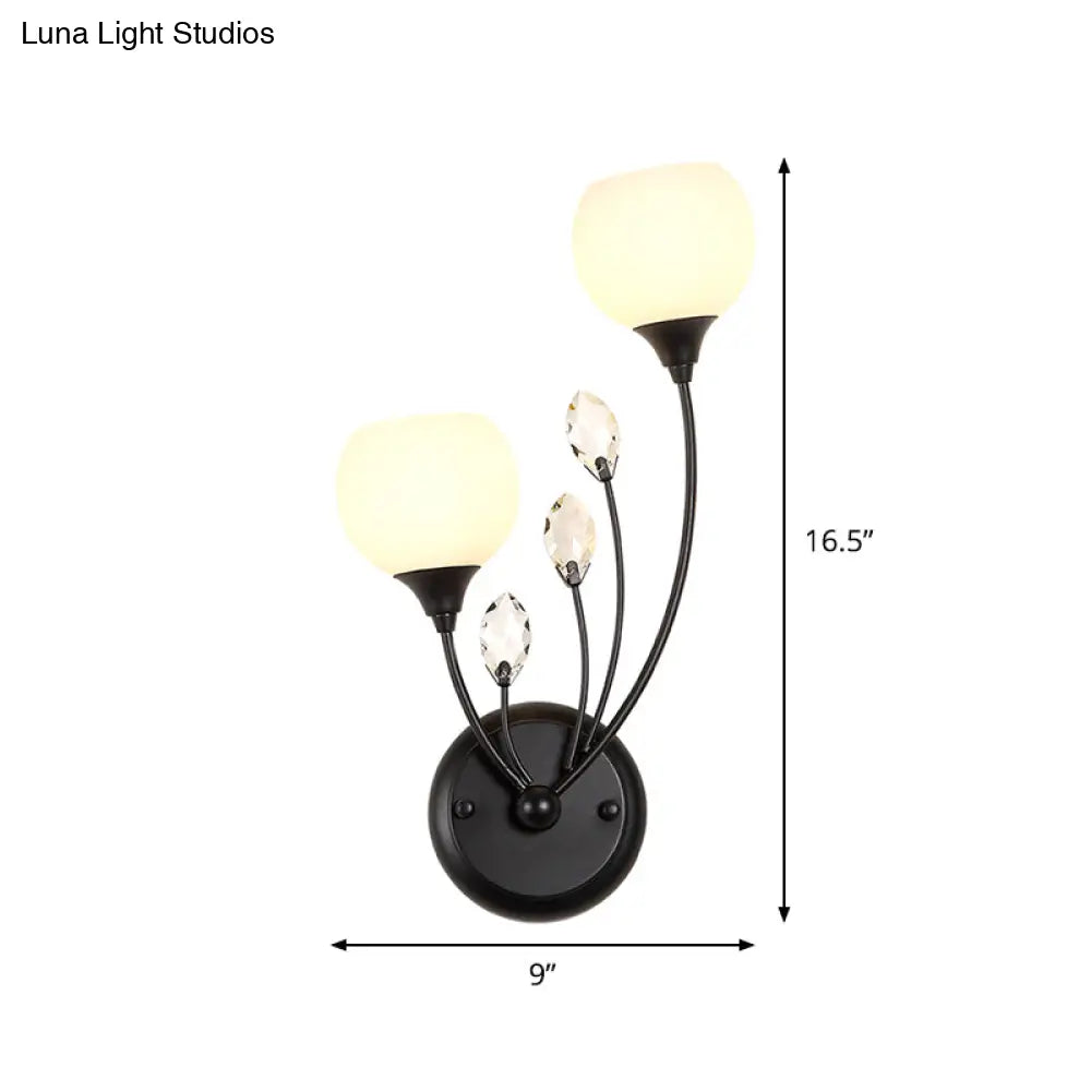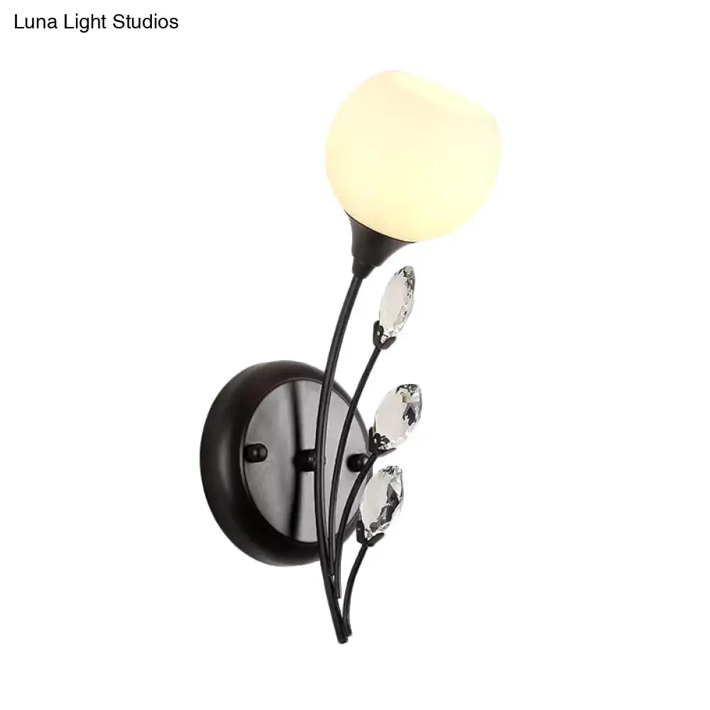 Aplique de pared DecorBites™ negro con media bombilla y pantalla de cristal blanco esmerilado: lámpara de pared moderna y elegante.