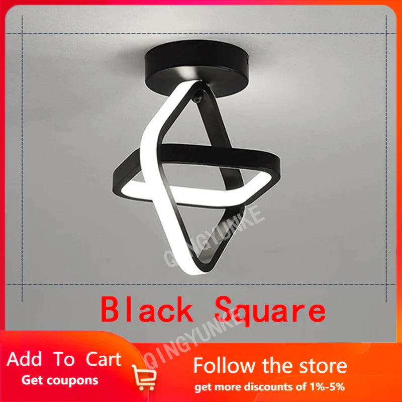 Lámpara de techo LED cuadrada negra DecorBites™: Iluminación moderna para pasillos, vestidores y balcones.